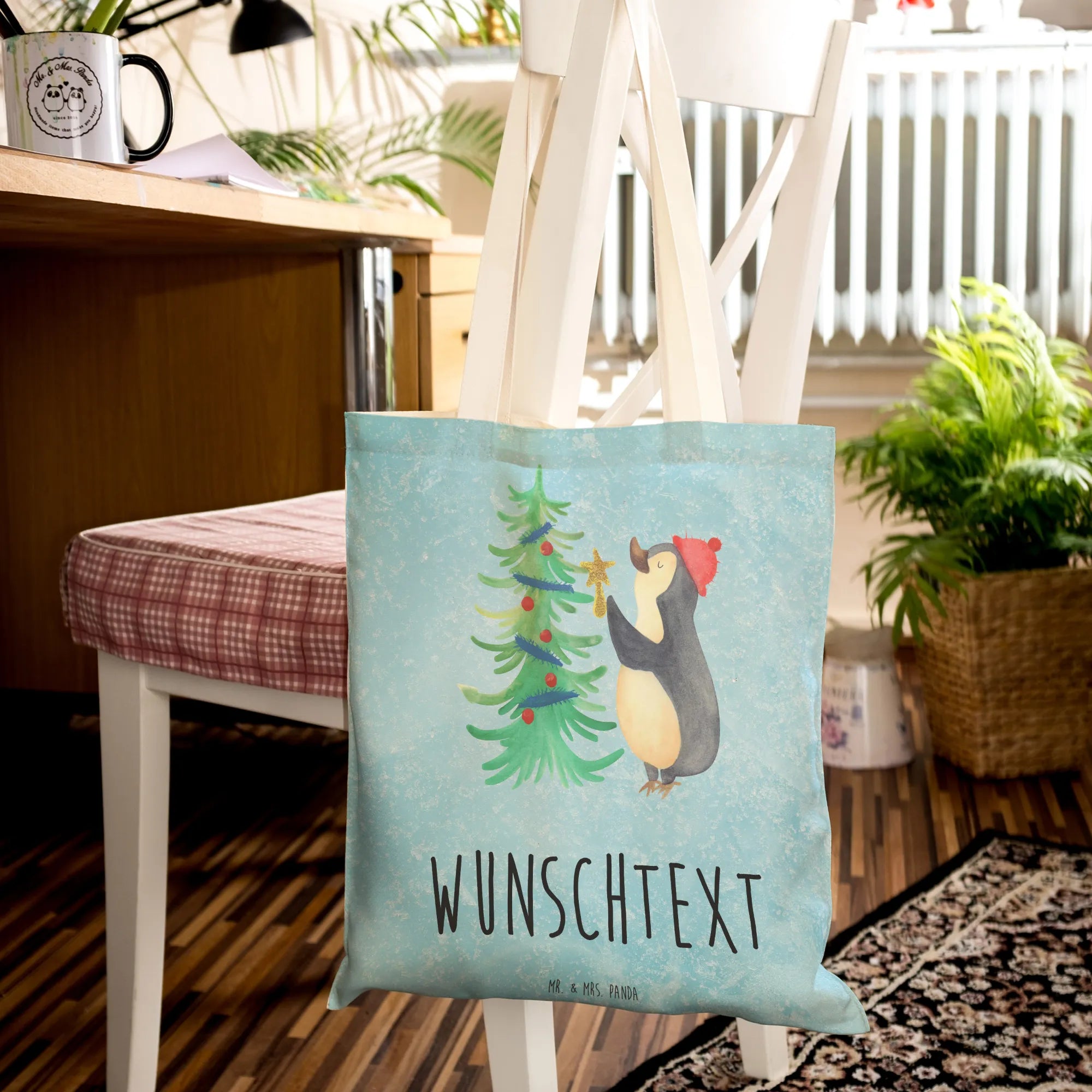 Personalisierte Einkaufstasche Pinguin Weihnachtsbaum