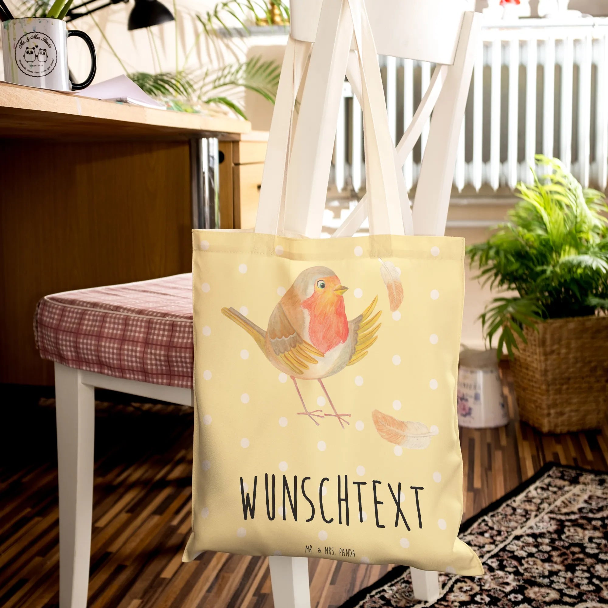 Personalisierte Einkaufstasche Rotkehlchen mit Federn