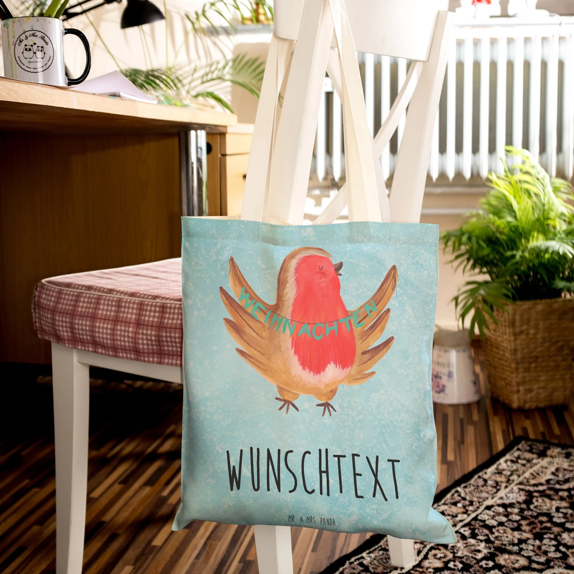 Personalisierte Einkaufstasche Rotkehlchen Weihnachten