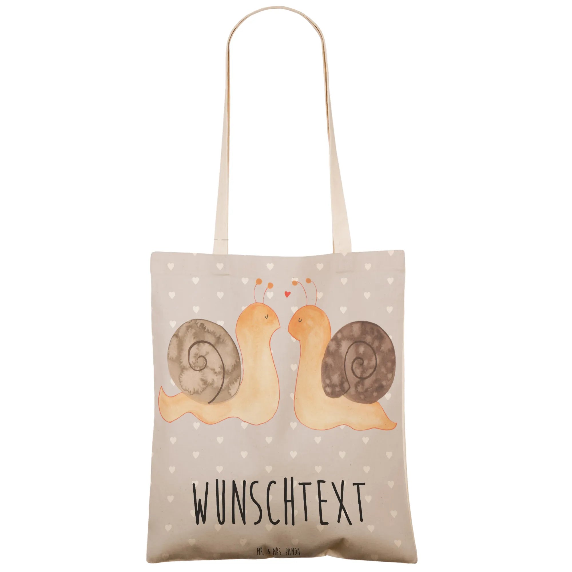 Die personalisierte Einkaufstasche mit dem Motiv "Schnecken Liebe" aus der Kollektion Liebe von Mr. & Mrs. Panda ist das perfekte Geschenk für Paare, Freunde und Verliebte! Du suchst nach einer besonderen Überraschung für deinen Lebenspartner, deine Freundin oder deinen Freund? Diese charmante Tasche wird Herzen höher schlagen lassen!