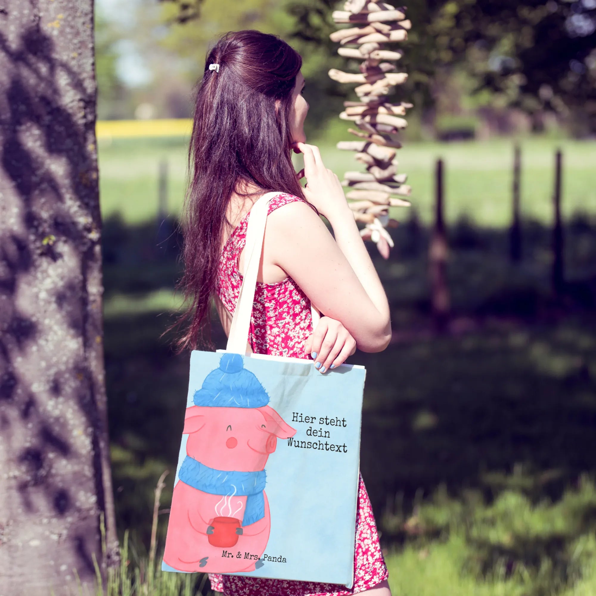 Personalisierte Einkaufstasche Schweinchen Glühwein Design – Mr. & Mrs. Panda