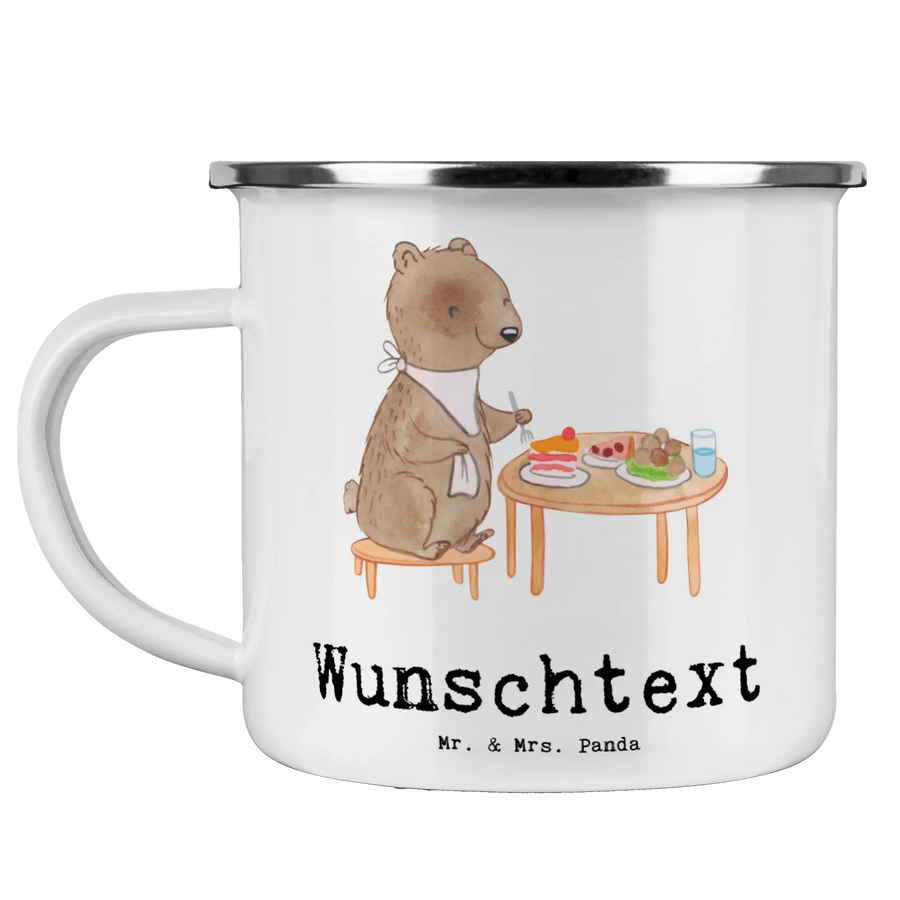 Die personalisierte Emaille Tasse Bär Essen gehen Tage von Mr. & Mrs. Panda ist das perfekte Geschenk für alle, die gerne essen gehen oder ihre Liebe zum Essen ausdrücken möchten. Diese wunderschöne Tasse ist nicht nur ein praktisches Campinggeschirr, sondern auch ein echter Hingucker.