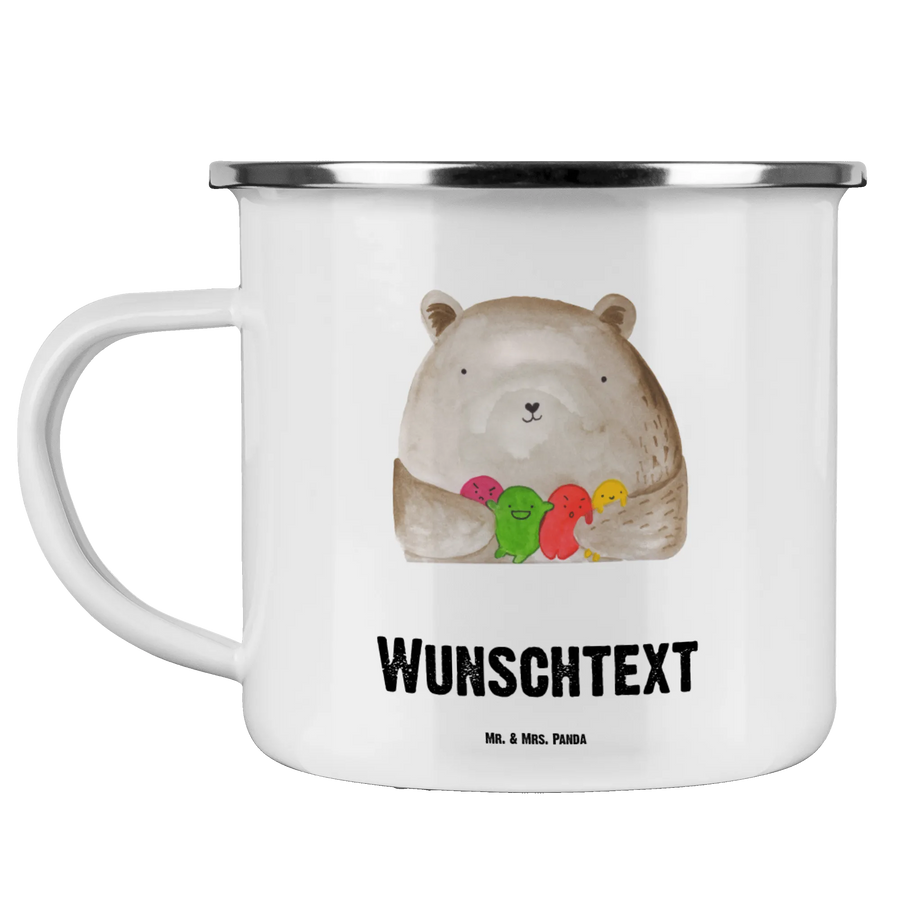 Die personalisierte Emaille Tasse "Bär Gefühl" von Mr. & Mrs. Panda ist das perfekte Geschenk für all diejenigen, die ein wenig Wahnsinn in ihrem Leben haben möchten! Egal, ob für den nächsten Campingausflug mit Freunden oder als kreative Kaffeetasse für die morgendliche Routine – diese Tasse bringt ein Lächeln in jeden Tag.