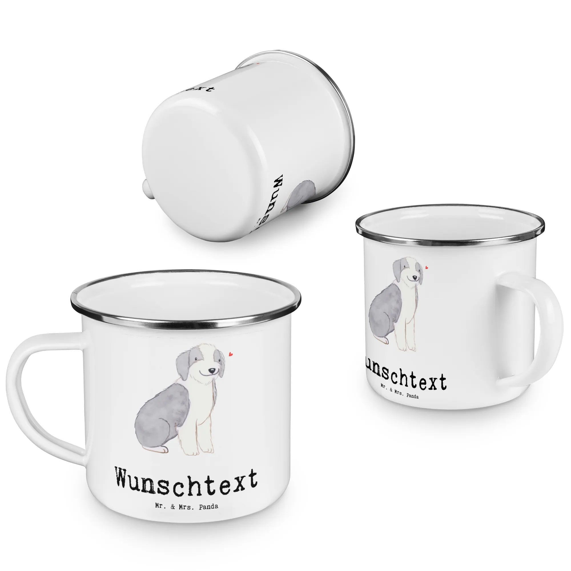 Personalisierte Emaille Tasse Bearded Collie Lebensretter