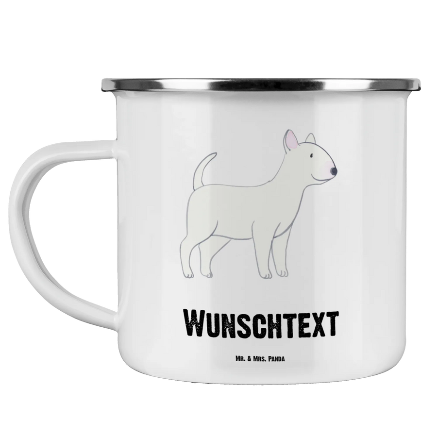 Die personalisierte Emaille Tasse "Mein Lebensretter ist ein Bullterrier" von Mr. & Mrs. Panda ist das perfekte Geschenk für alle Hundebesitzer und Tierfreunde. Diese Tasse vereint Funktionalität und Stil und bietet eine einzigartige Möglichkeit, Deinen geliebten Bullterrier zu ehren. Egal, ob für den Kaffee am Morgen oder den Tee am Abend, diese Tasse bringt ein Lächeln in Dein Gesicht. Das liebevoll gestaltete Design zeigt einen Bullterrier in seiner charmanten Pose, und der Spruch erinnert jeden Hundeliebhaber daran, wie wertvoll seine treue Begleitung ist.