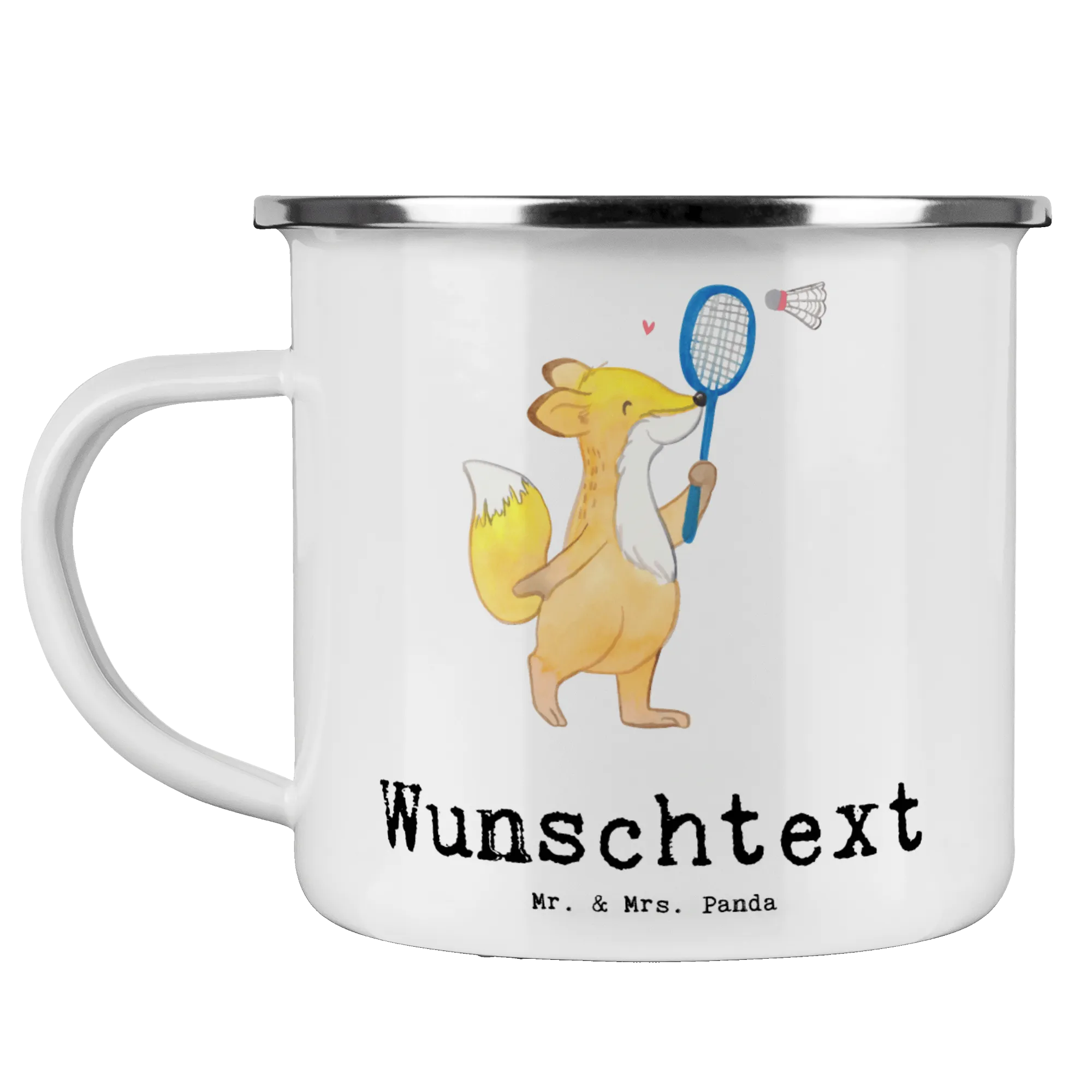 Personalisierte Emaille Tasse „Fuchs – Federball spielen Tage“