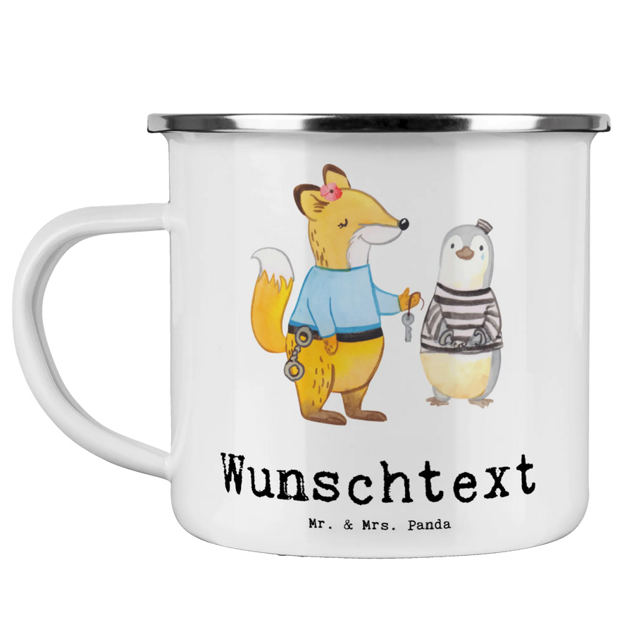 Die personalisierte Emaille Tasse "Justizvollzugsbeamte mit Herz" von Mr. & Mrs. Panda ist das perfekte Geschenk für alle, die in der Justizvollzugsanstalt arbeiten oder einfach nur die Leidenschaft für diesen Beruf haben. Diese wunderschöne Tasse, aus kratzfester Emaille gefertigt, lädt nicht nur zum Schmunzeln ein, sondern zeigt auch, wie sehr die Arbeit eines Justizvollzugsbeamten geschätzt wird. Mit einem süßen, handgezeichneten Motiv einer Justizvollzugsbeamtin, die auf humorvolle Weise zeigt, wie ernst sie ihren Job nimmt, wird jeder Kaffeepause ein wenig bunter.