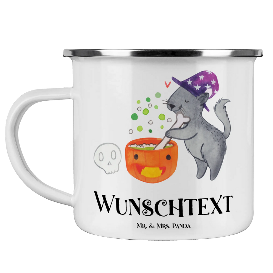 Personalisierte Emaille Tasse Kater Hexenkessel
