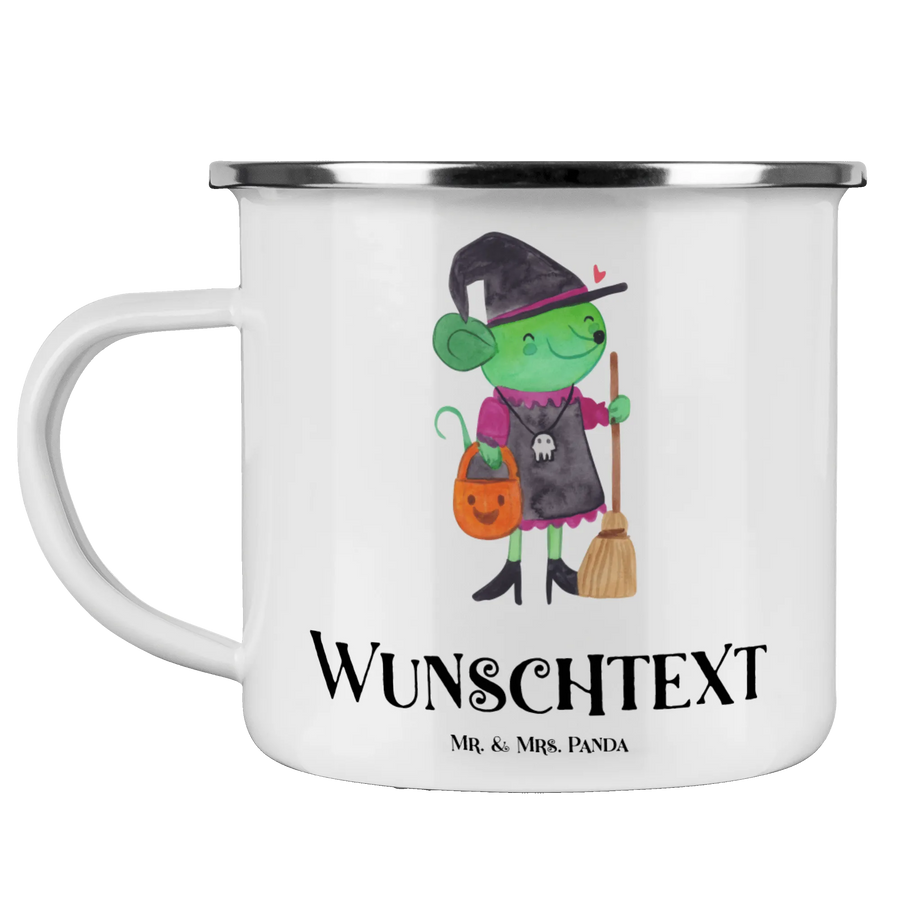 Die personalisierte Emaille Tasse mit dem süßen Motiv der Maus Hexe aus der Halloween Kollektion von Mr. & Mrs. Panda ist das perfekte Geschenk für alle, die die gruselige Jahreszeit lieben! Diese wunderschöne und beständige Tasse bezaubert nicht nur durch ihr liebevolles Design, sondern auch durch ihre Funktionalität.