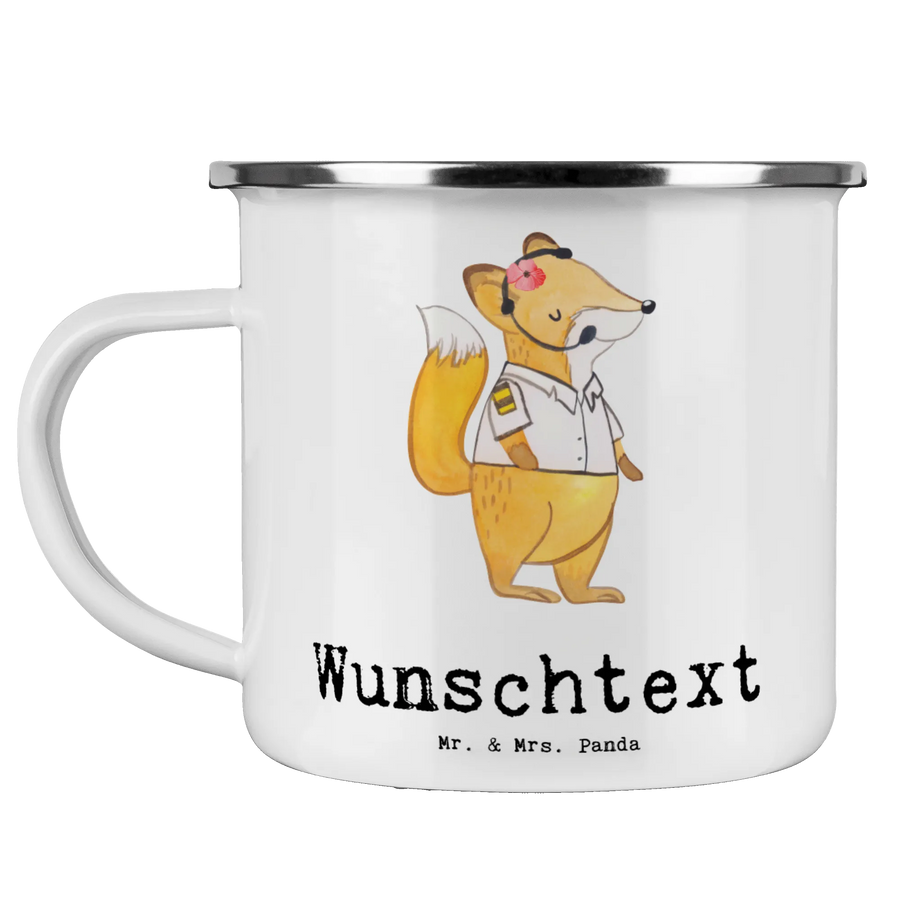 Personalisierte Emaille Tasse Pilotin mit Herz – Mr. & Mrs. Panda