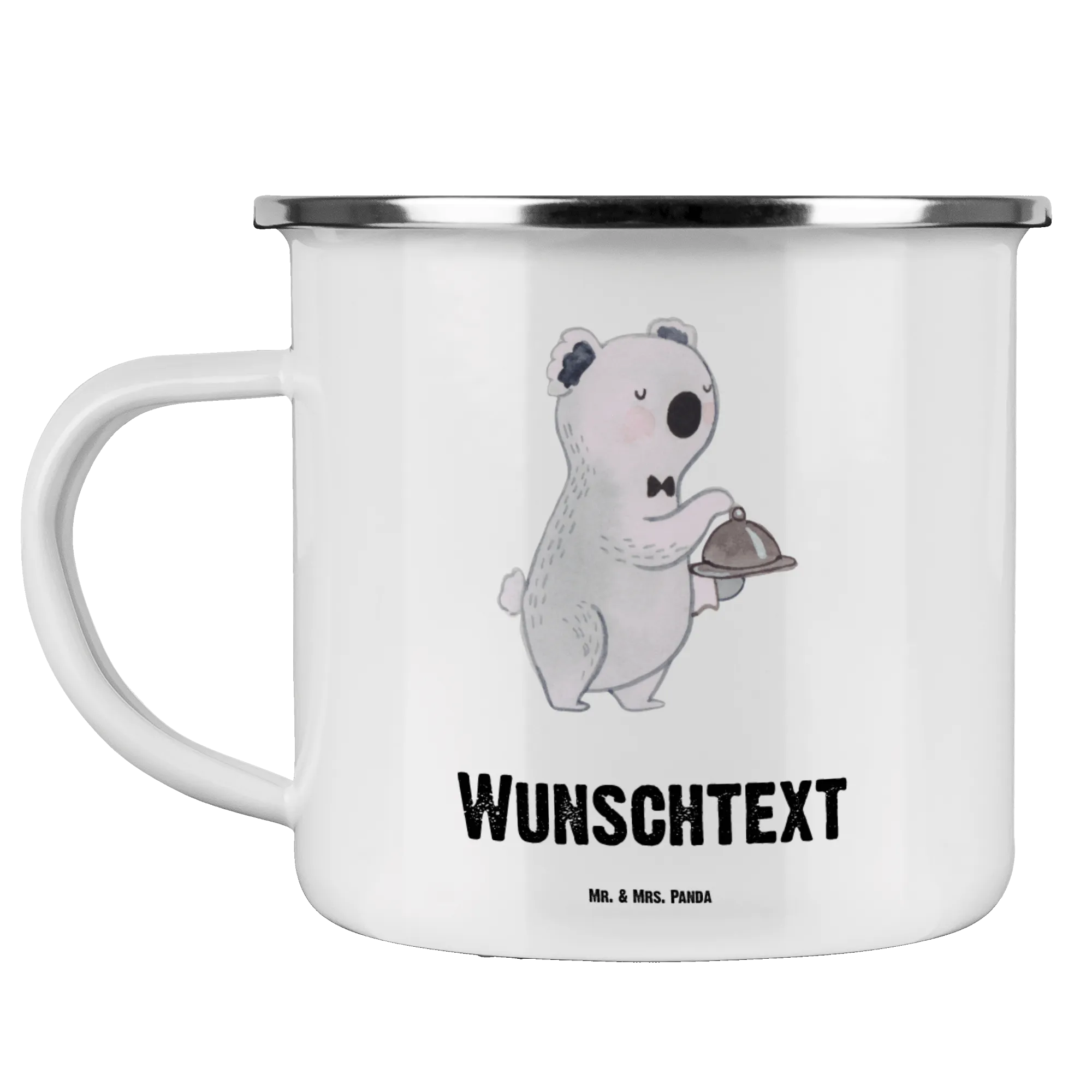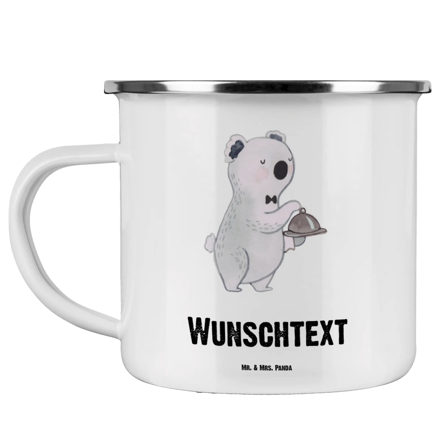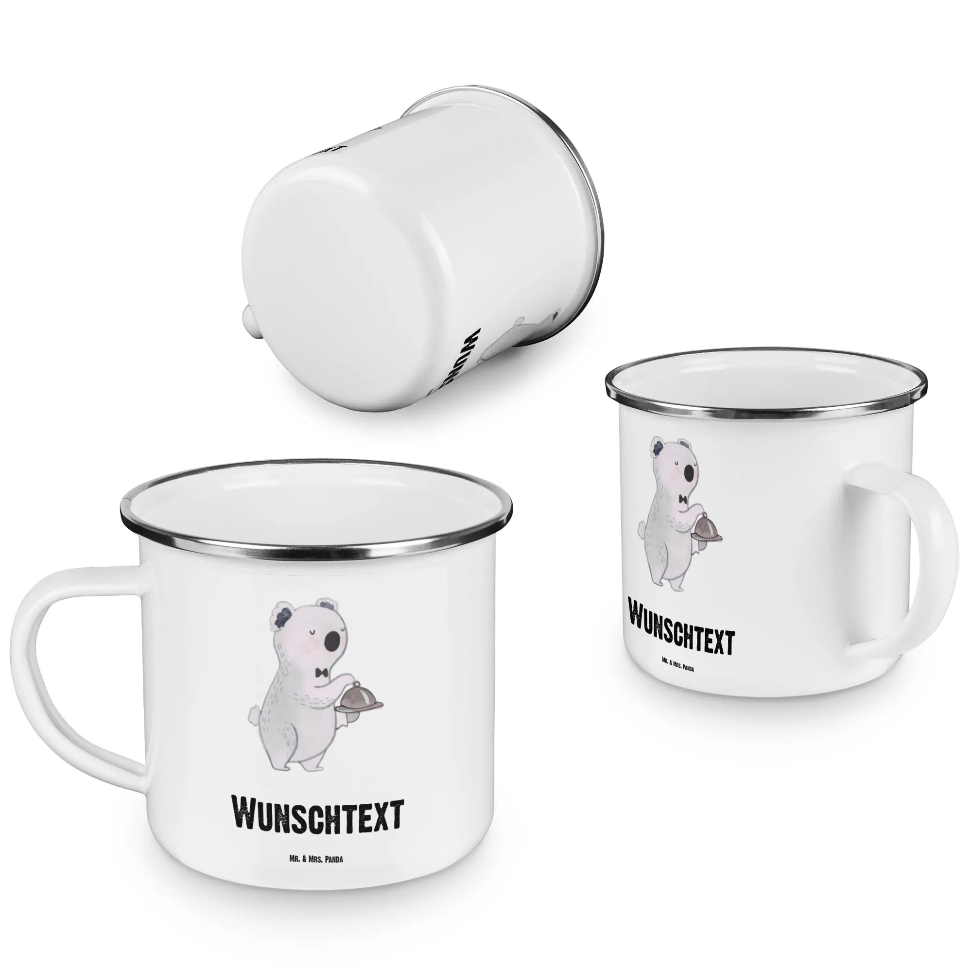 Die personalisierte Emaille Tasse "Restaurantfachmann mit Herz" von Mr. & Mrs. Panda ist das perfekte Geschenk für alle, die in der Gastronomie arbeiten oder eine Leidenschaft für gutes Essen haben. Mit einem humorvollen Slogan wie "Du bist nur ein halber Mensch, wenn du kein Restaurantfachmann bist" bringt diese Tasse garantiert ein Lächeln auf die Gesichter ihrer Besitzer.