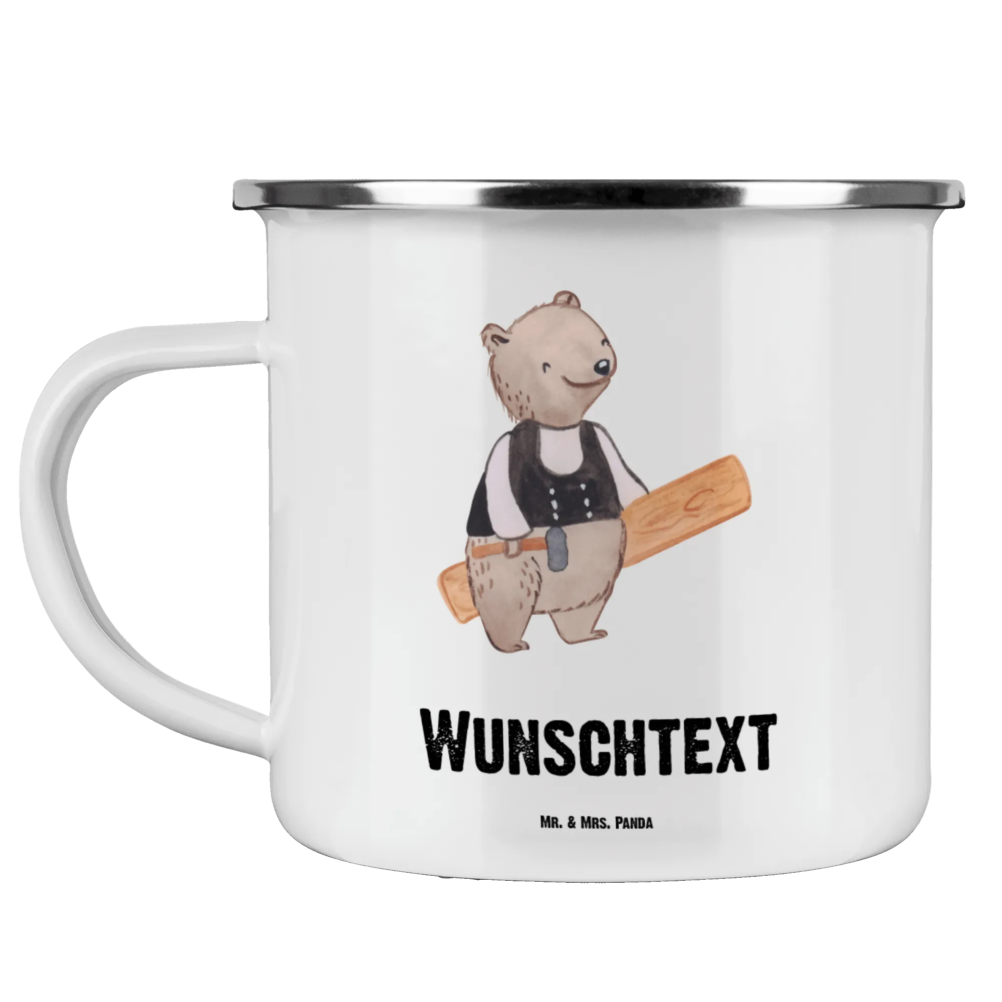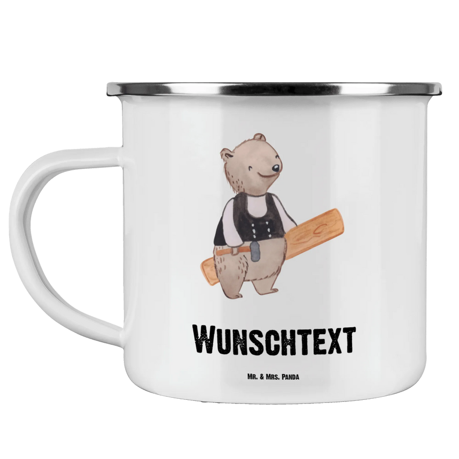 Die personalisierte Emaille Tasse "Zimmermann mit Herz" von Mr. & Mrs. Panda ist das perfekte Geschenk für jeden Zimmermann und Holzliebhaber! Mit viel Liebe zum Detail zeigt diese Tasse einen süßen Bären, der stolz in seiner Zimmermannskluft mit einem Hammer in der einen und einem Holzbrett in der anderen Hand posiert. Egal ob bei der Arbeit, auf dem Campingplatz oder einfach zu Hause – diese Tasse begleitet dich überall und sorgt für gute Laune! 😊