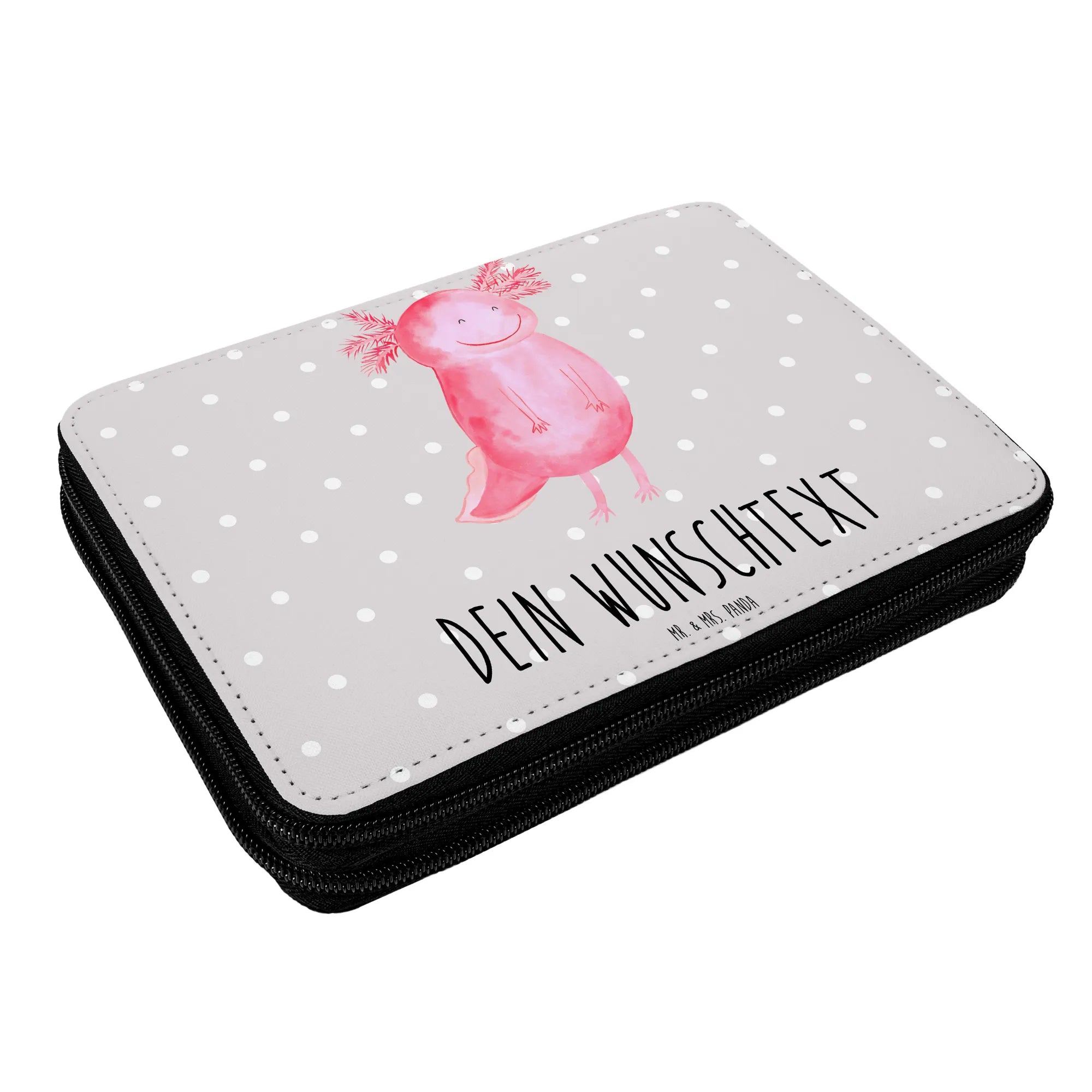 Personalisierte Federmappe Axolotl glücklich