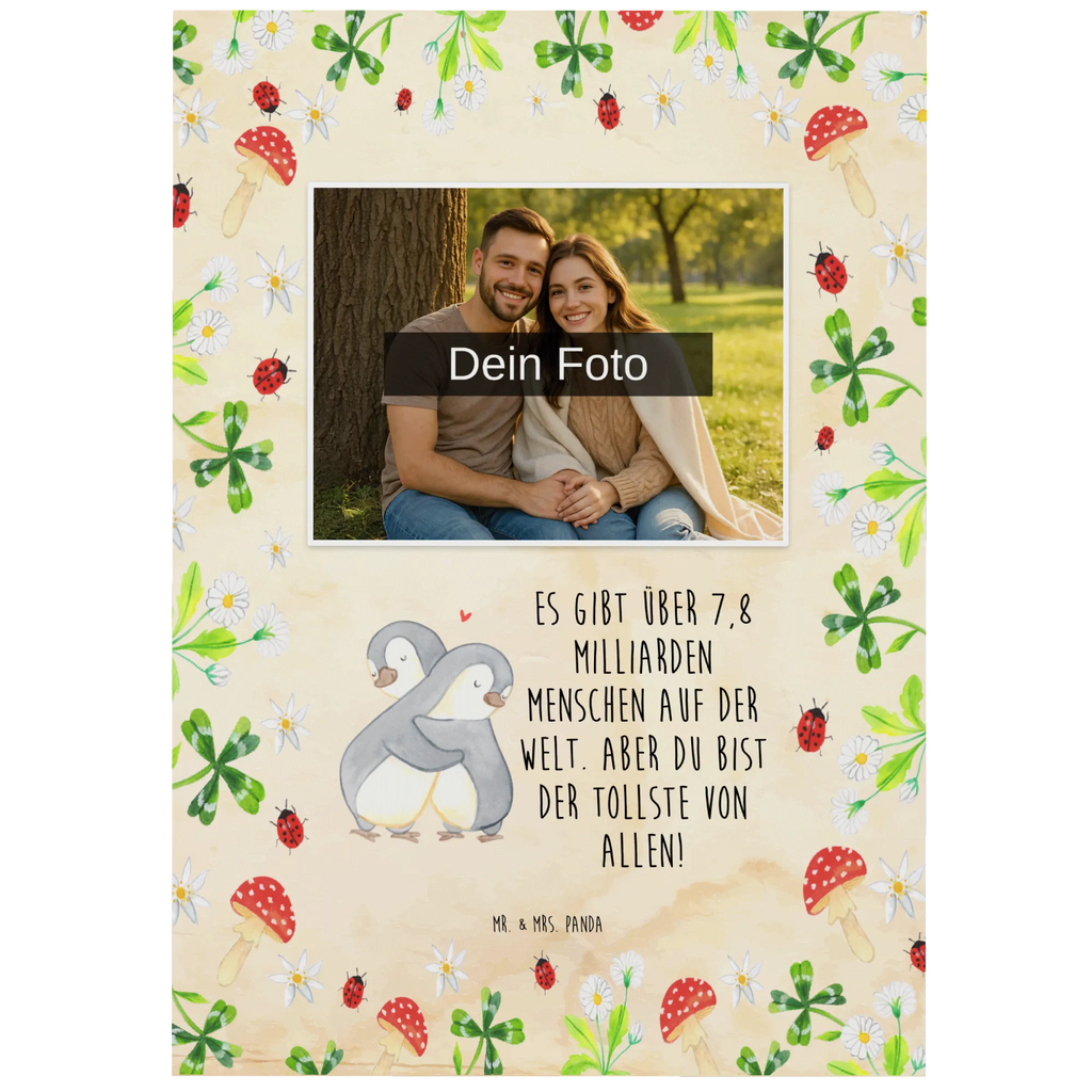 Gestalte deine eigene, personalisierte Foto Postkarte von Mr. & Mrs. Panda! Diese wunderschöne Postkarte ist mit einzigartigen und witzigen Illustrationen versehen, die deine Botschaft zum Leben erwecken. Du hast die Möglichkeit, sie mit deinem eigenen Wunschtext oder Namen zu individualisieren und außerdem ein Foto hochzuladen, das perfekt integriert wird. Vergiss nicht, darauf zu achten, dass das Foto in einer hohen Auflösung vorliegt, um ein optimales Druckergebnis zu erzielen, und dass der Bildausschnitt gut gewählt ist, damit keine wichtigen Details verloren gehen. Die Postkarte misst 150 mm x 1 mm und ist aus hochwertigem Karton gefertigt, was sie sowohl robust als auch hochwertig macht. Ihre glänzende Vorderseite und matte Rückseite geben dir die ideale Mischung aus Eleganz und Funktionalität. Ideal für besondere Momente wie Geburtstage, Hochzeiten oder Taufen - überrasche jemanden, den du liebst, mit dieser ganz besonderen Karte, die nur für ihn oder sie entworfen wurde!