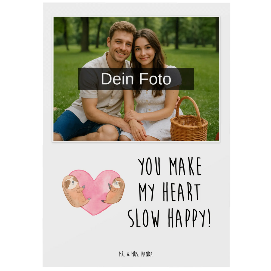 Die personalisierte Foto Postkarte mit dem bezaubernden Motiv 'Faultiere Herz' aus der Sammlung Liebe von Mr. & Mrs. Panda ist der perfekte Liebesbeweis für besondere Anlässe. Egal ob zum Valentinstag, zum Hochzeitstag oder einfach als süßes Mitbringsel für deine Freundin oder deinen Partner – diese Postkarte bringt garantiert Herzklopfen!