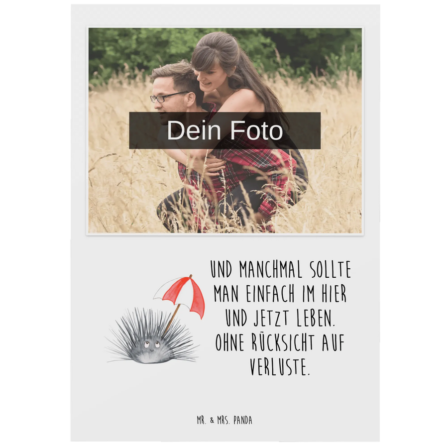 Entdecke die zauberhafte Welt von Mr. & Mrs. Panda mit unserer personalisierten Foto Postkarte im süßen Seeigel-Design! Diese einzigartige Postkarte bringt nicht nur Freude, sondern erinnert dich auch daran, im Hier und Jetzt zu leben. Der niedliche Seeigel mit seinen großen Augen und dem sanften Lächeln zaubert jedem ein Lächeln ins Gesicht.