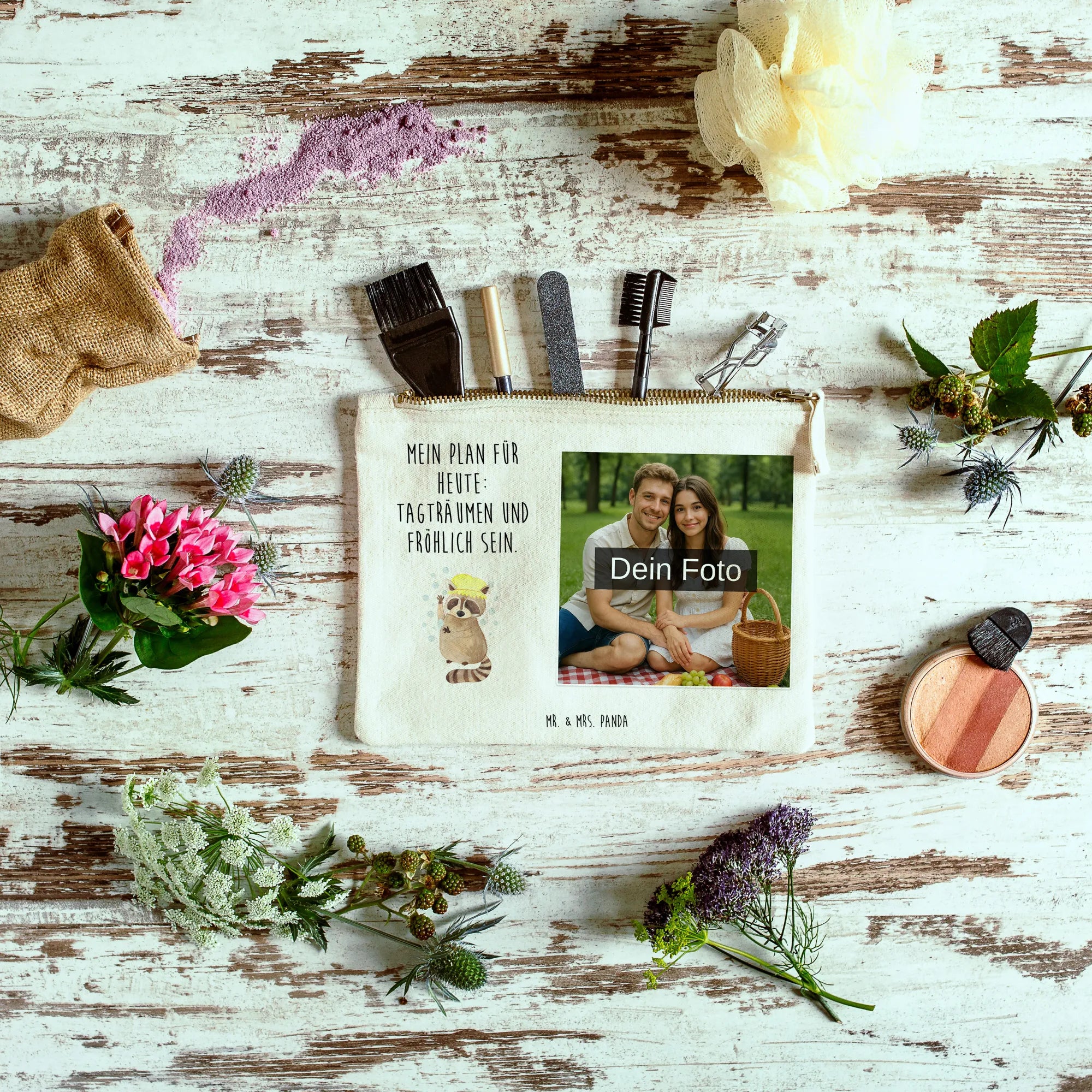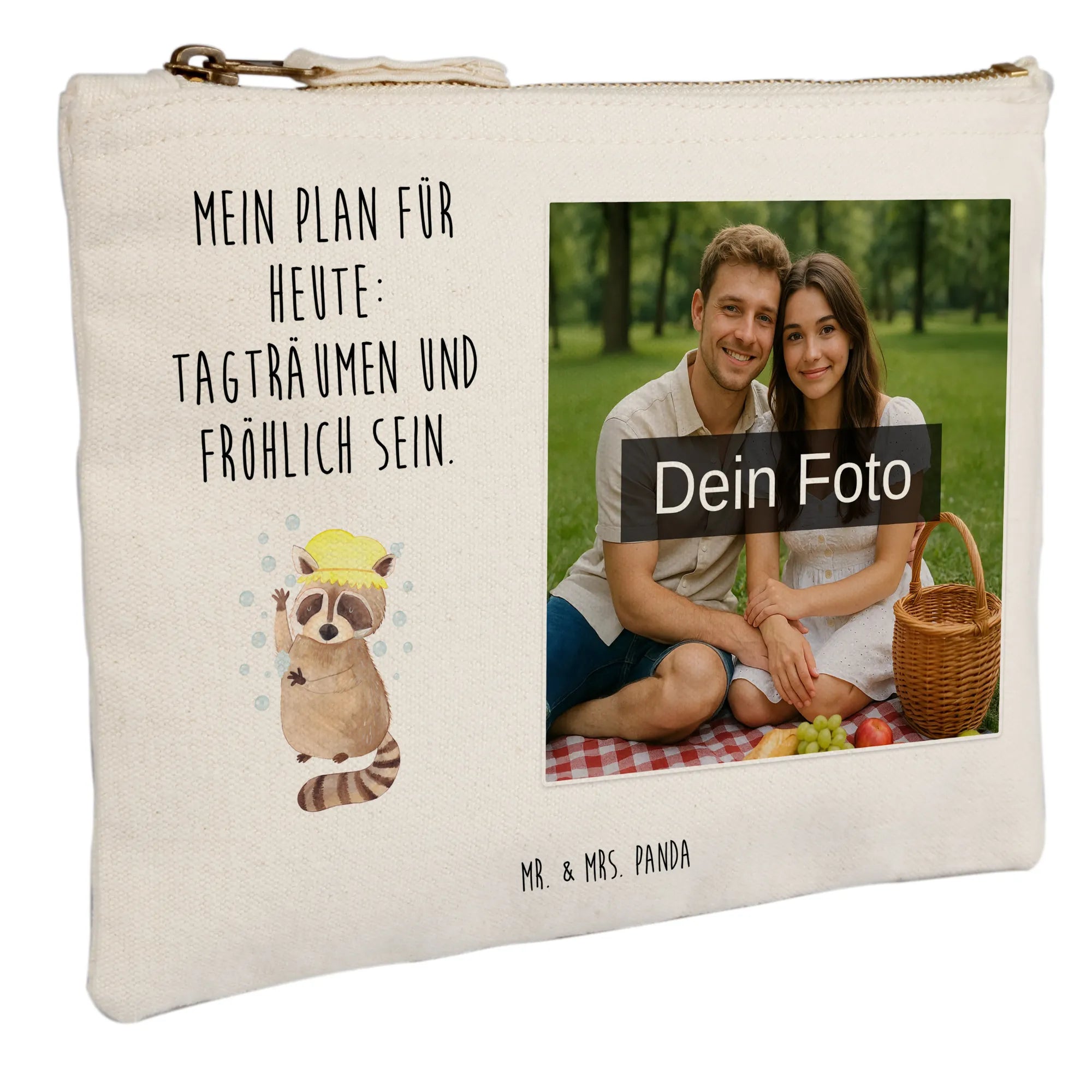 Erlebe die Freude an einer personalisierten Foto Schminktasche von Mr. & Mrs. Panda! Diese schmucker Tasche wird nicht nur von unseren süßen Designs verschönert, sondern kann auch mit deinem eigenen Wunschfoto verziert werden. Egal, ob für den Alltag oder besondere Anlässe - sie ist perfekt, um deine Kosmetikartikel stilvoll zu transportieren. In verschiedenen Größen erhältlich, um sicherzustellen, dass du die richtige Größe für all deine Beauty-Utensilien bekommst! Das Material besteht zu 100% aus weicher Baumwolle, was sie besonders angenehm im Griff macht. Darüber hinaus ist die Tasche besonders formbeständig, dank der umsäumten und eingeschlagenen Innennähte. Eine einfache Pflege ist garantiert: Wir empfehlen lauwarme Handwäsche, damit die Farben strahlend bleiben. Denk dran, für das gewünschte Druckergebnis sollte das Bild in hoher Auflösung vorliegen und der Bildausschnitt gut gewählt sein. Verwandle Erinnerungen in eine stilvolle Aufbewahrungslösung und mache deinen Alltag ein bisschen schöner!