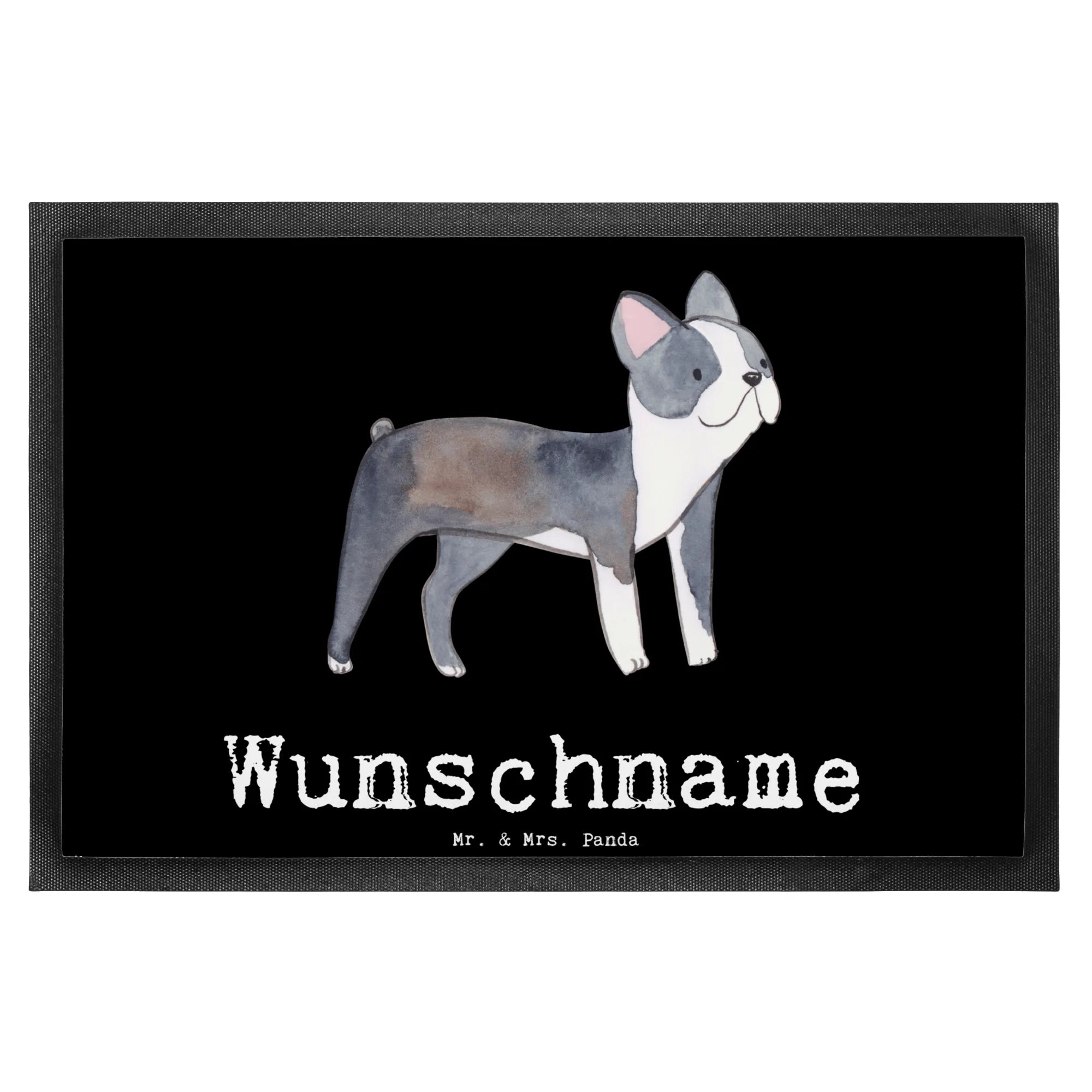 Entdecke die perfekte personalisierte Fußmatte mit dem liebevollen Motiv 'Mein Lebensretter ist ein Boston Terrier' von Mr. & Mrs. Panda. Diese Fußmatte ist nicht nur ein praktisches Accessoire, sondern auch ein herzliches Willkommen für jeden Besucher.