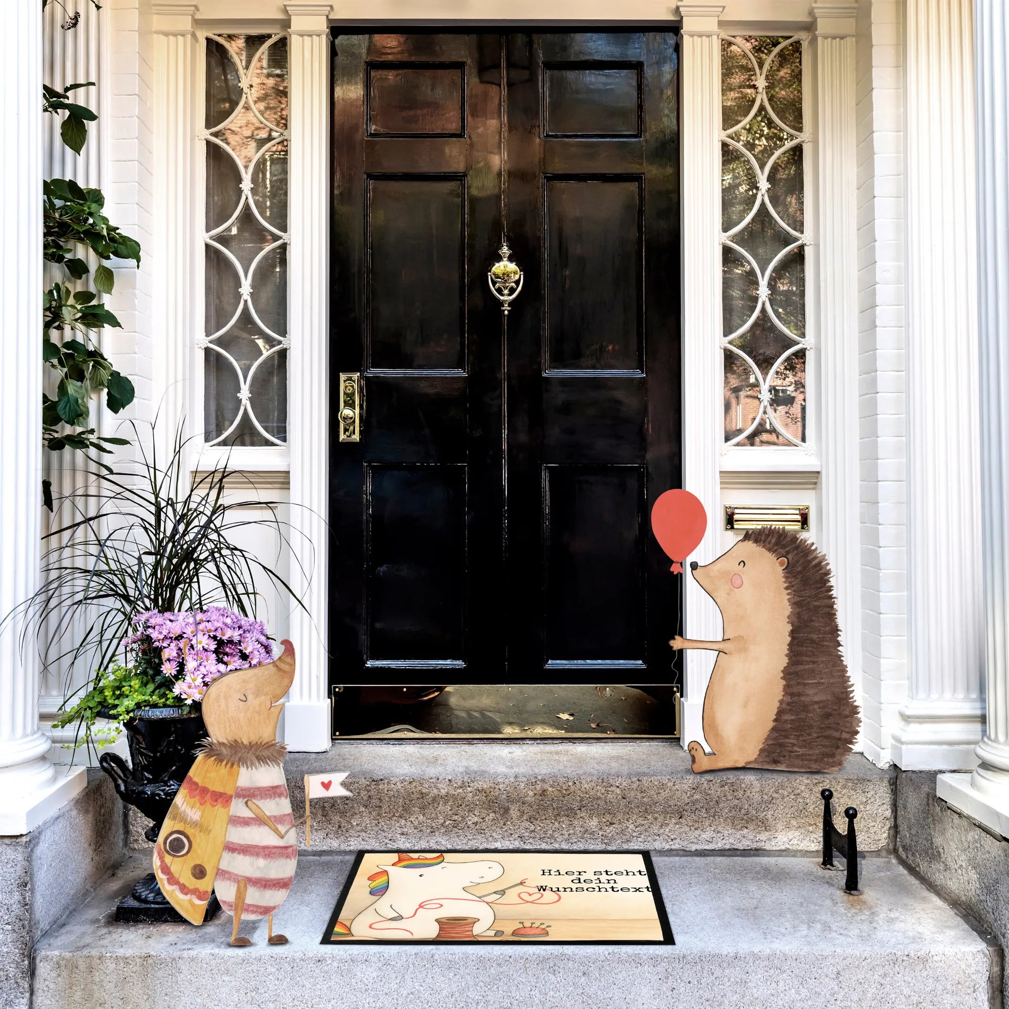 Mit der personalisierten Fußmatte von Mr. & Mrs. Panda setzt du einen kreativen Akzent in deinem Zuhause! Diese Matte misst 400 mm x 600 mm x 5 mm und besteht aus strapazierfähigem Polyesterfilz. Die gummierte Rückseite macht sie besonders rutschfest, sodass du keine Sorge haben musst, auszurutschen. Sie kann mit deinem Wunschtext oder einem persönlichen Spruch gestaltet werden und wird damit zum echten Blickfang. Das Material ist wetterbeständig und abriebfest, perfekt für sowohl Innen- als auch Außeneinsätze. Die Pflege der Matte ist unkompliziert: einfach ausklopfen, absaugen oder bei hartnäckigen Flecken bis zu 30°C waschen. Der breite Gummirand verhindert das Ausfransen und verlängert die Lebensdauer dieser besonderen Matte. Lass dein Zuhause einladend wirken mit dieser einzigartigen Fußmatte, die zu deinem Stil passt!