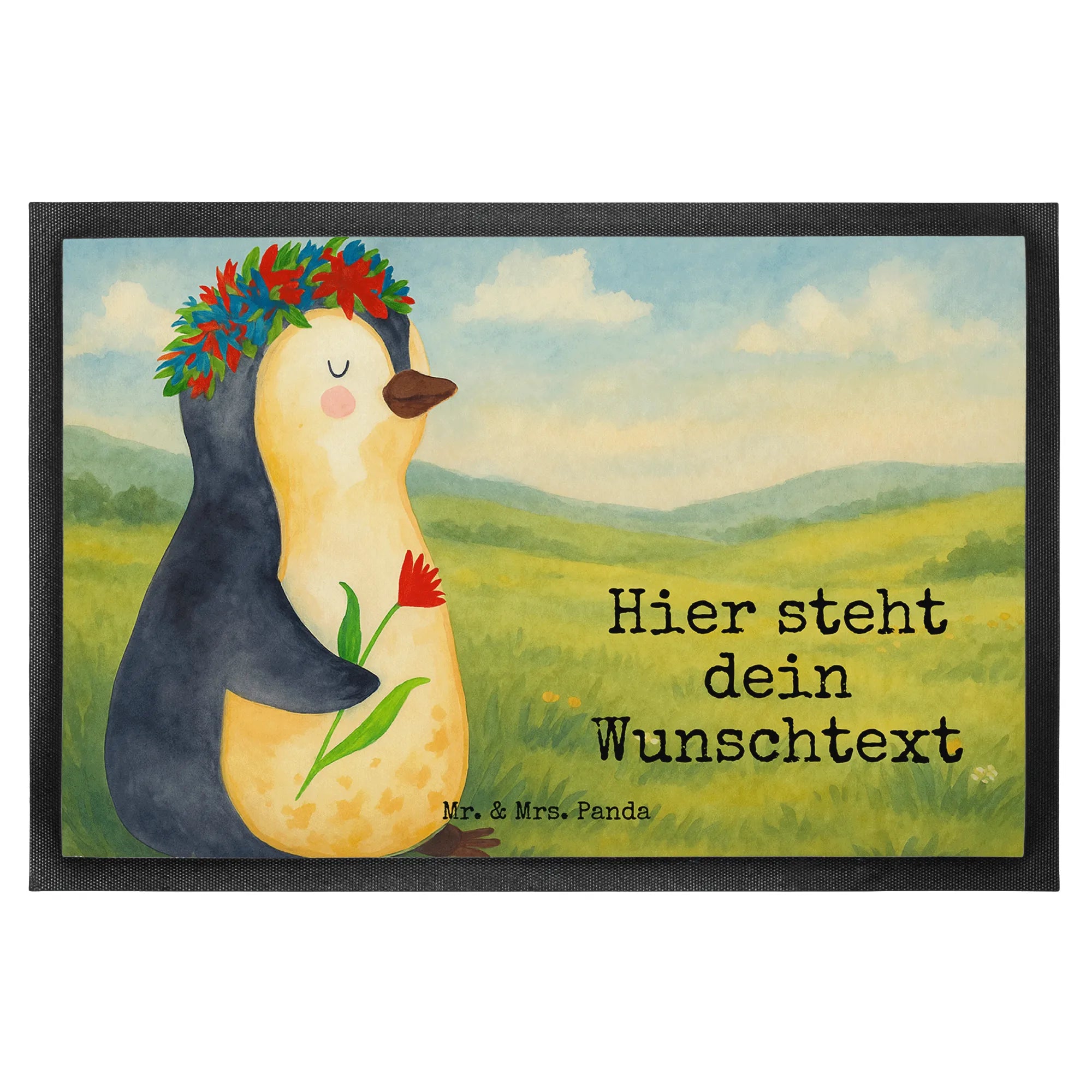 Personalisierte Fußmatte Pinguin Blumen Design - 40 x 60 cm