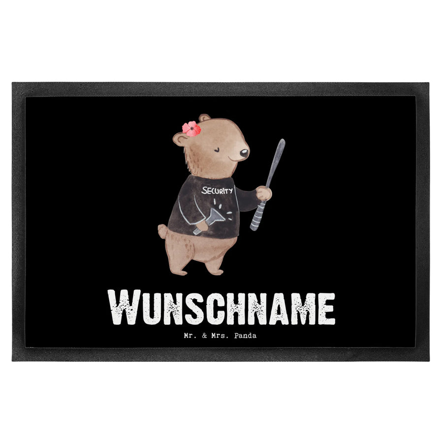 Personalisierte Fußmatte „Security Mitarbeiterin mit Herz“ – das perfekte Geschenk aus der Berufe-Kollektion von Mr. & Mrs. Panda.