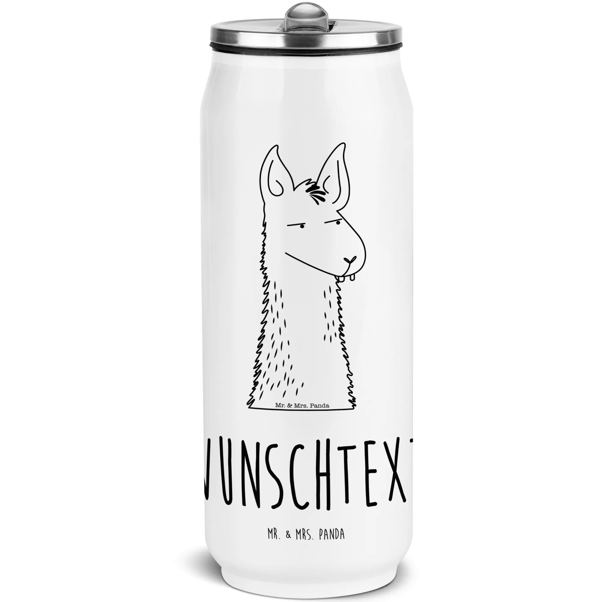 Die personalisierte Getränkedose Trinkflasche mit dem süßen Lamakopf Motiv "genervt" aus der Lama-Kollektion von Mr. & Mrs. Panda ist das perfekte Geschenk für alle, die einen Hauch von Humor und einen tollen Begleiter für den Alltag suchen. Mit einer Füllmenge von 420 ml und der isolierten Edelstahl-Oberfläche hält sie deine Getränke sowohl heiß als auch kalt.