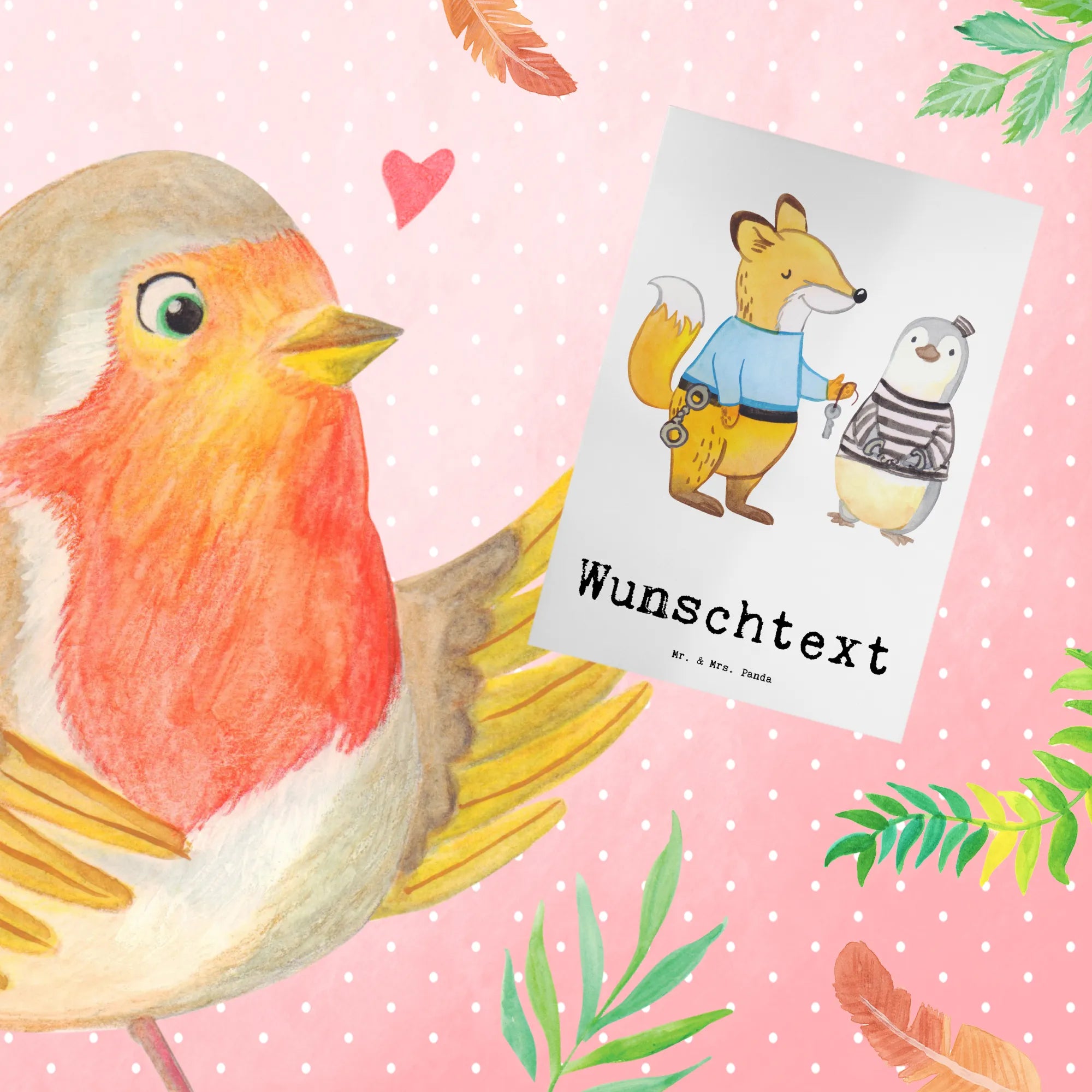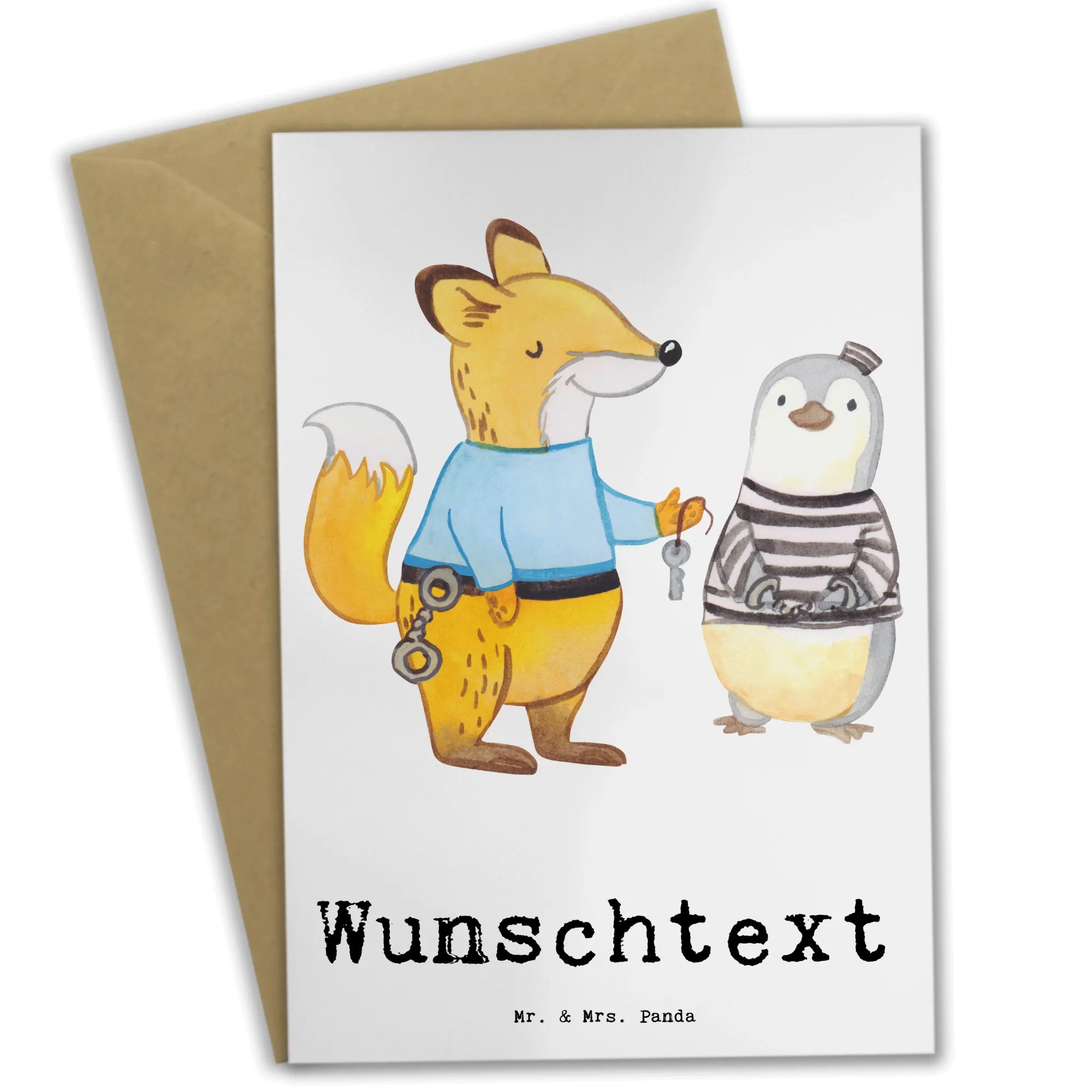 Die personalisierte Grußkarte "Justizvollzugsbeamter mit Herz" aus der Berufe Kollektion von Mr. & Mrs. Panda ist der perfekte Ausdruck Deiner Wertschätzung für Menschen, die in diesem besonderen Beruf tätig sind. Egal, ob Du eine Karte für einen Kollegen anlässlich seines Jubiläums, für einen Abschied in den Ruhestand oder einfach als Dankeschön für die tägliche harte Arbeit suchst – diese Karte ist eine wunderbare Wahl!