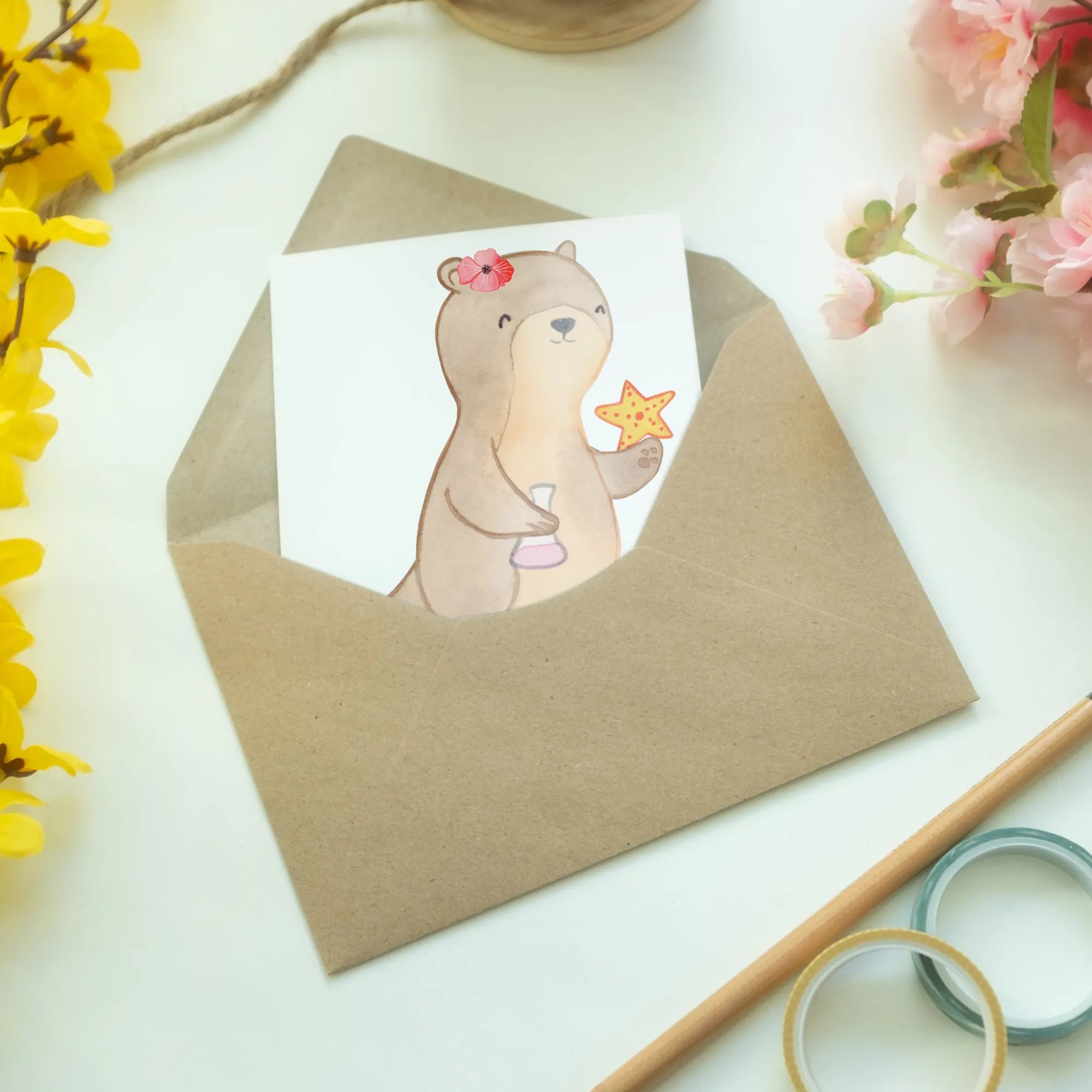 Wenn du auf der Suche nach dem perfekten Geschenk für eine Meeresforscherin oder Ozeanografin bist, dann ist die personalisierte Grußkarte "Ozeanografin mit Herz" von Mr. & Mrs. Panda genau das Richtige für dich! Diese wundervolle, personalisierte Klappkarte ist nicht nur eine Grußkarte, sondern auch ein liebevolles Andenken, das jeden Anlass zu etwas Besonderem macht. Ob als Einladungskarte, Glückwunschkarte zum Geburtstag oder für eine Hochzeitsfeier – diese Karte mit dem süßen Motiv einer Ozeanografin ist ideal, um deine besonderen Wünsche und Nachrichten zu übermitteln.