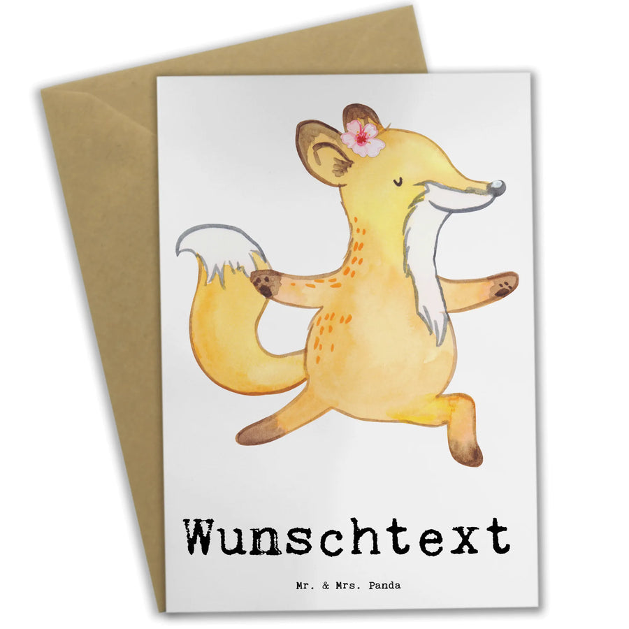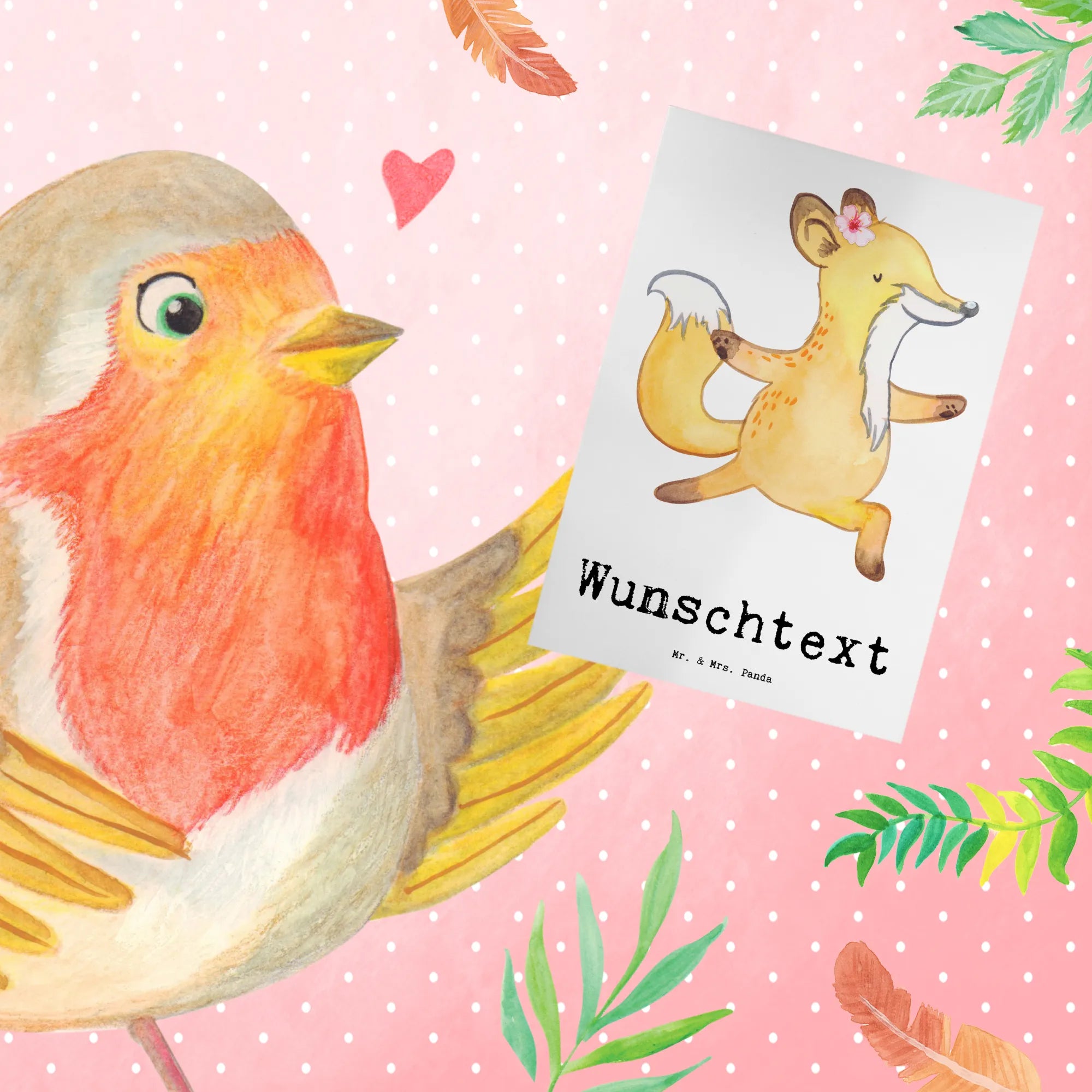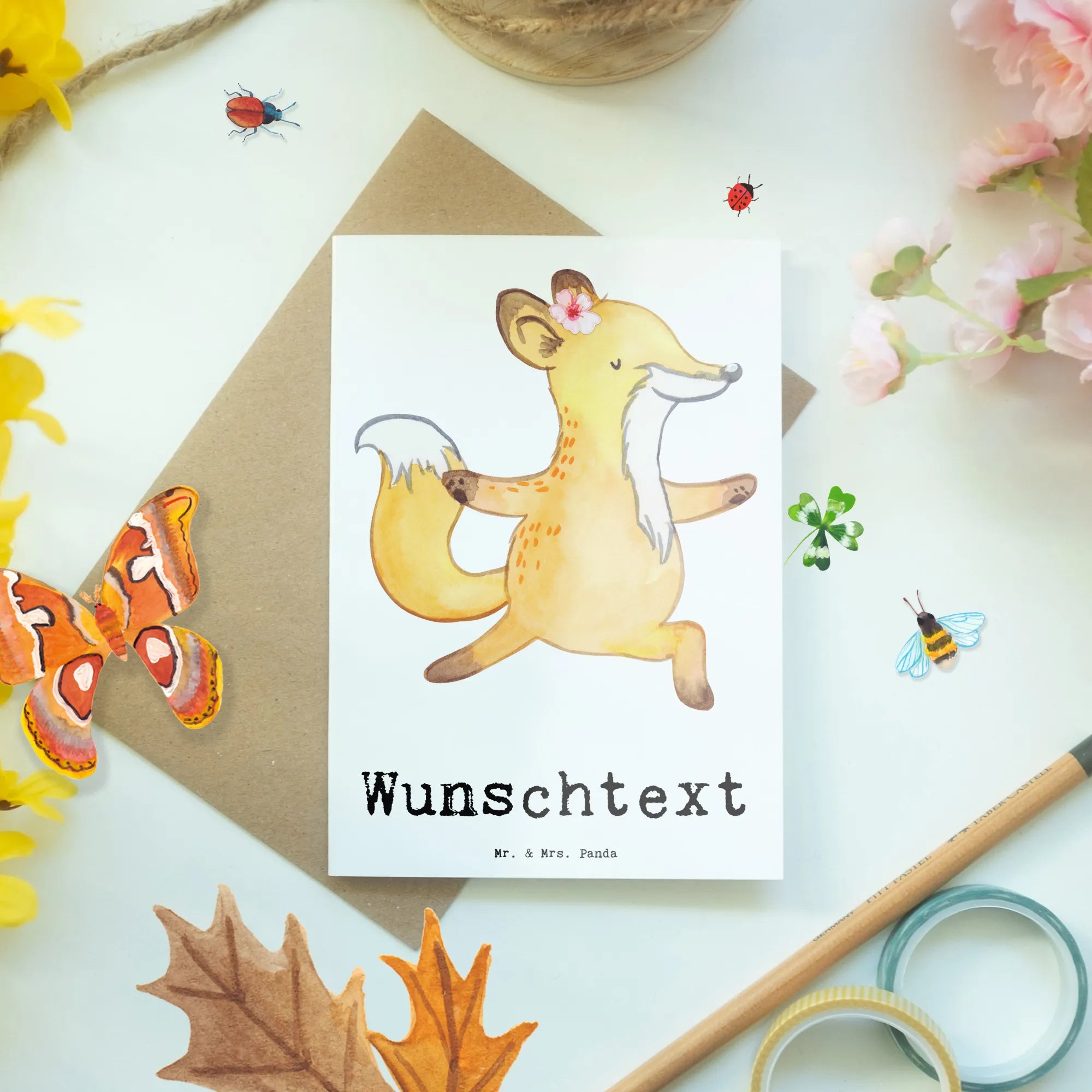 Das bezaubernde Design zeigt einen niedlichen weiblichen Fuchs in einer kraftvollen Yoga-Stellung, dem Krieger, umgeben von fröhlichen Farben und einer liebevollen Botschaft. Die Karte wird mit einem Spruch bedruckt: "Du bist nur ein halber Mensch, wenn du keine Kinderyogalehrerin bist.", der jeden Empfänger zum Schmunzeln bringt und zeigt, wie wichtig und einzigartig diese Berufung ist.