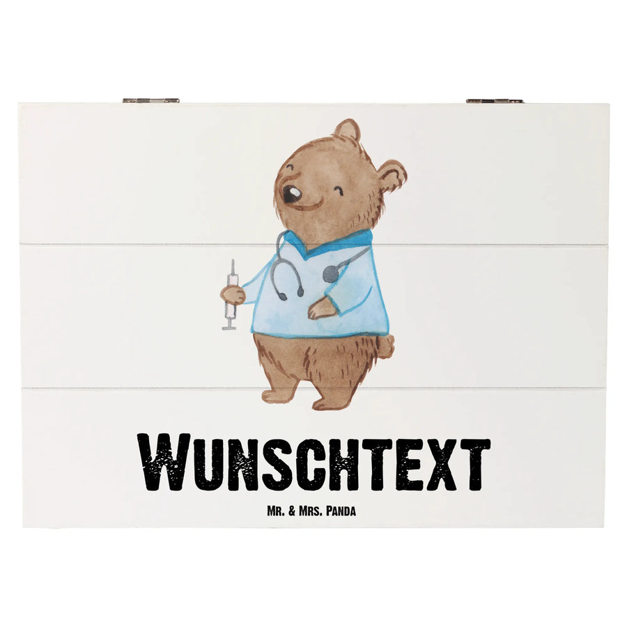Die personalisierte Holzkiste Anästhesist mit Herz von Mr. & Mrs. Panda ist das perfekte Geschenk für alle, die im Bereich Anästhesie tätig sind oder einfach eine besondere Wertschätzung für diesen Beruf haben.