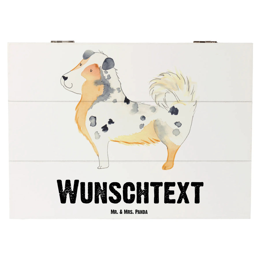 Entdecke die perfekte personalisierte Holzkiste mit dem bezaubernden Motiv unseres geliebten Australian Shepherds. Diese wunderschöne Kiste von Mr. & Mrs. Panda hat nicht nur ein süßes Design, das dein Herz höher schlagen lässt, sondern ist auch ein praktischer Aufbewahrungsort für all deine Schätze.