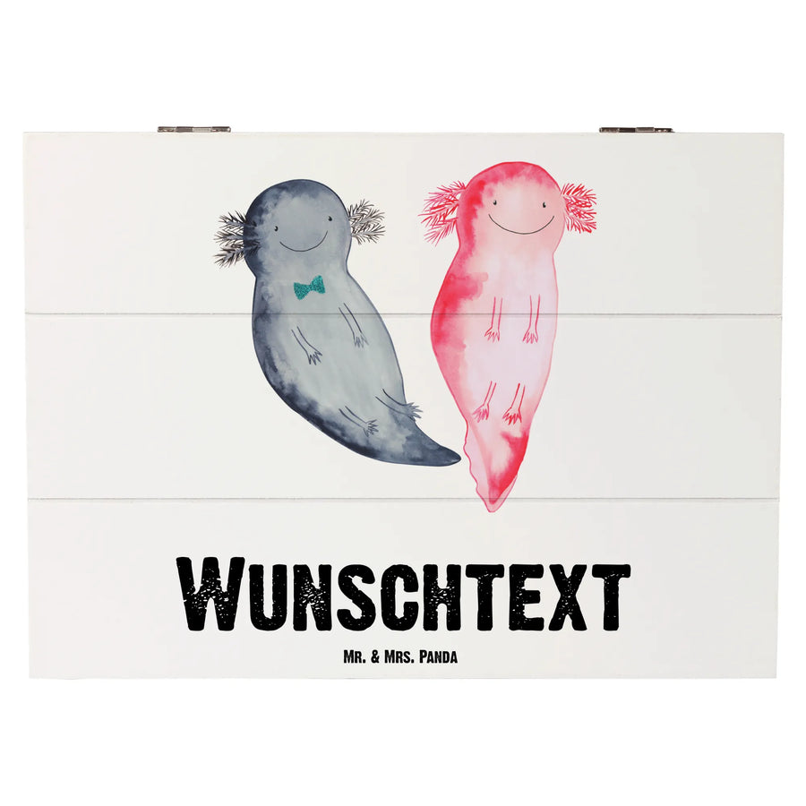 Entdecke die zauberhafte, personalisierte Holzkiste mit dem süßen Axolotl-Motiv Axel und Lotte von Mr. & Mrs. Panda! Diese einzigartige Kiste ist nicht nur ein praktischer Aufbewahrungsort für all deine wertvollen Schätze, sondern auch ein wunderschönes Geschenk, das von Herzen kommt.