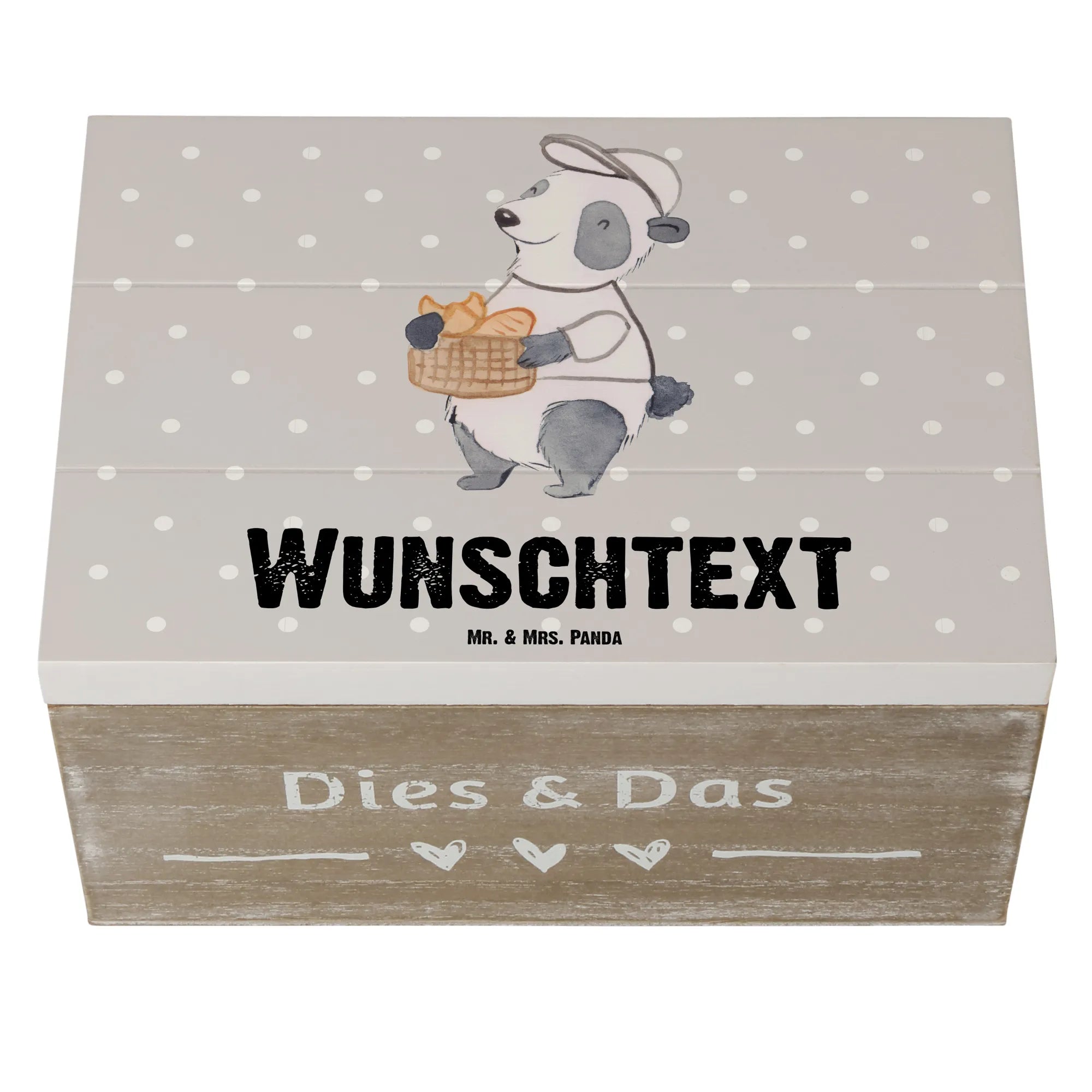 Die personalisierte Holzkiste 'Bäckereifachverkäufer mit Herz' von Mr. & Mrs. Panda ist das perfekte Geschenk für all jene, die das Bäckerhandwerk lieben oder einfach die süßen Köstlichkeiten aus einer Bäckerei schätzen. Ob als praktische Dekokiste, Aufbewahrungsbox für nostalgische Erinnerungen oder stilvolle Geschenkbox - diese Kiste ist ein wahres Allroundtalent!