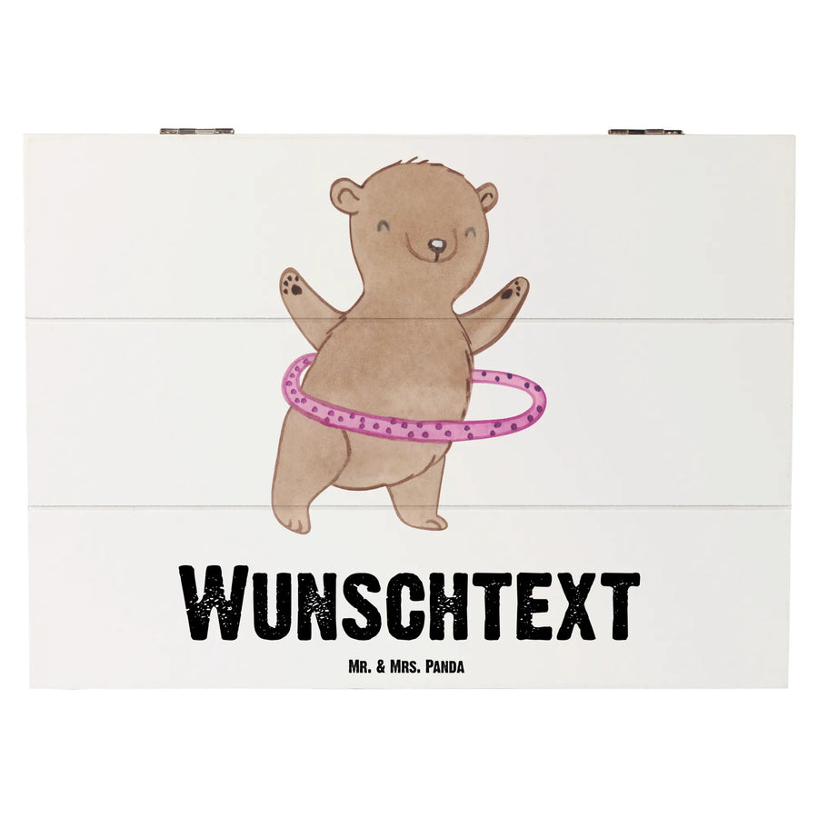 Die personalisierte Holzkiste mit dem liebevollen Motiv Bär Hula Hoop Tage von Mr. & Mrs. Panda ist das perfekte Geschenk für alle Sport- und Hula Hoop-Begeisterten! Diese besondere Kiste, ausgestattet mit dem schönen Slogan "Es gibt schlechte Tage, und es gibt Tage, an denen ich Hula Hoop mache", bringt Freude in jeden Alltag.