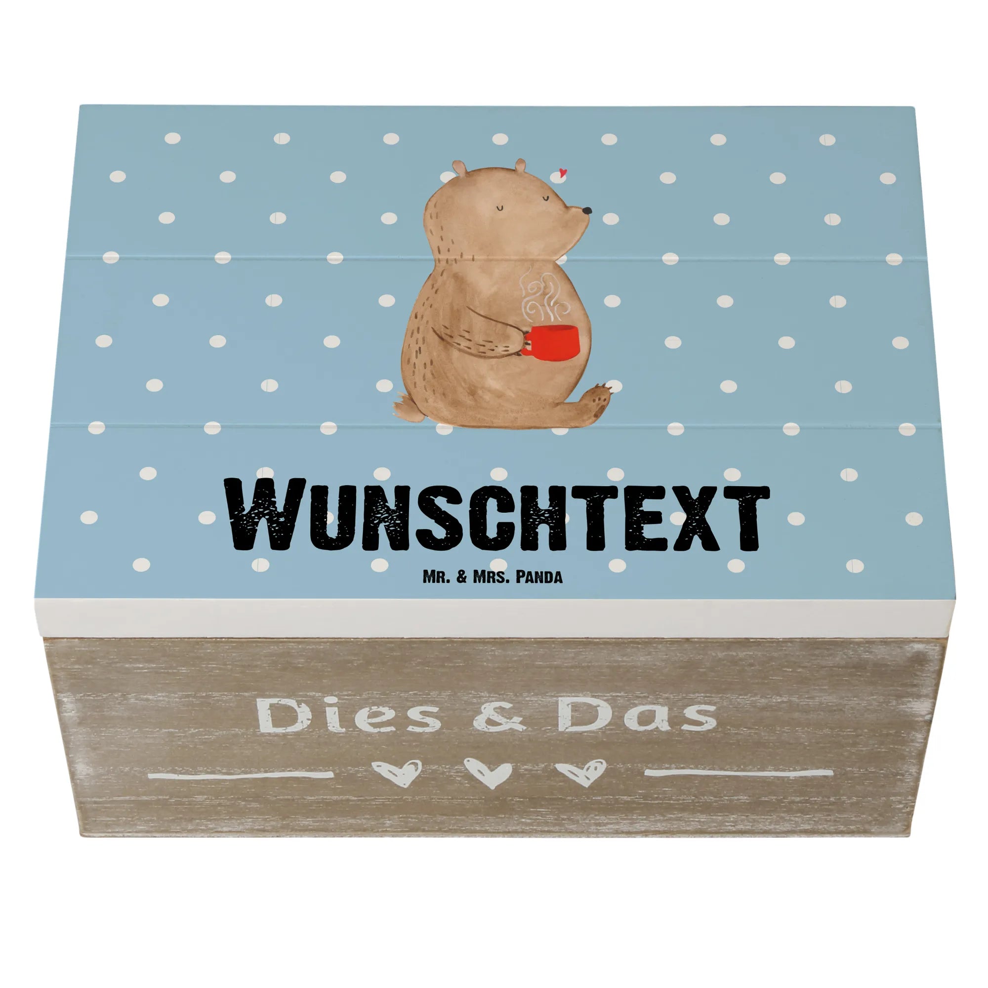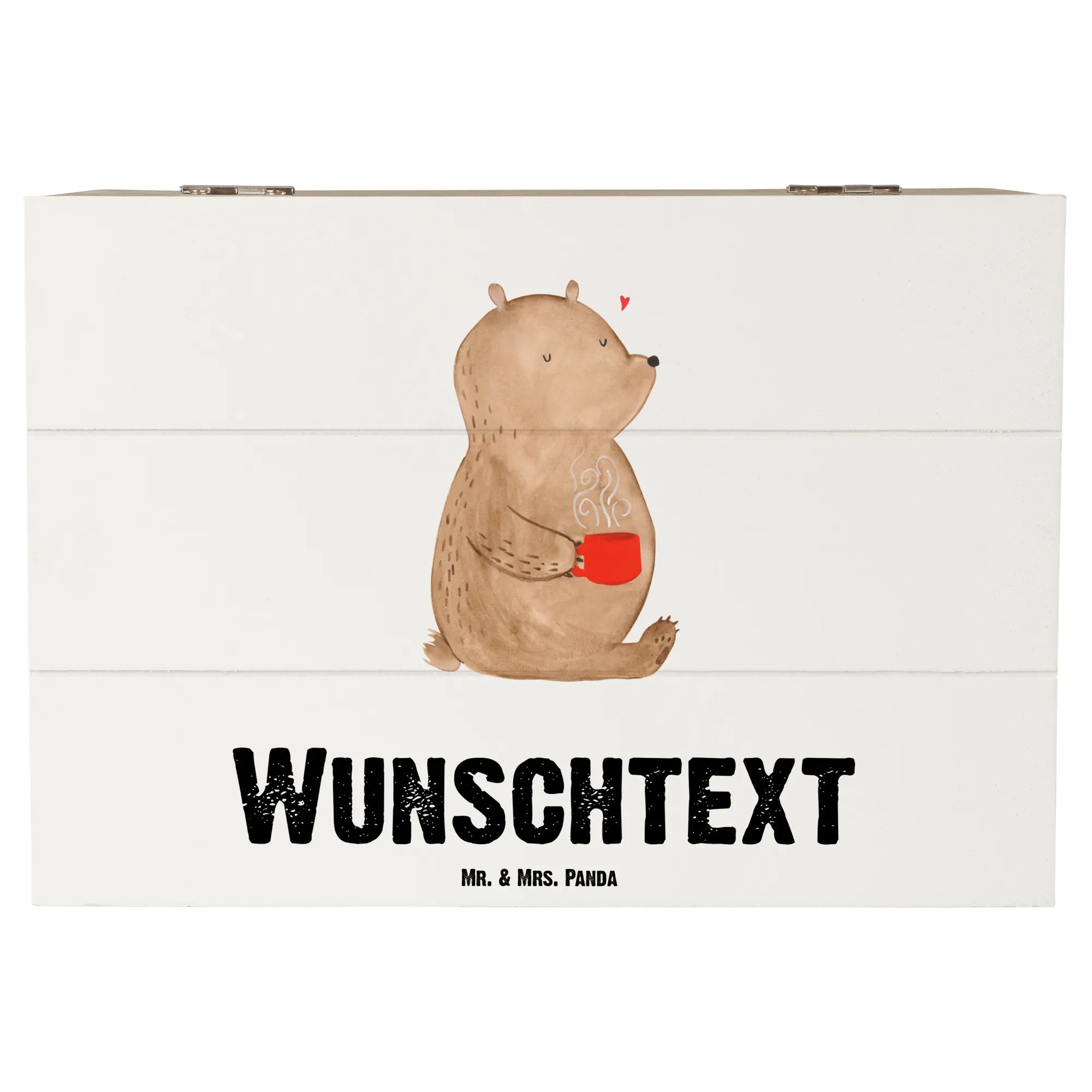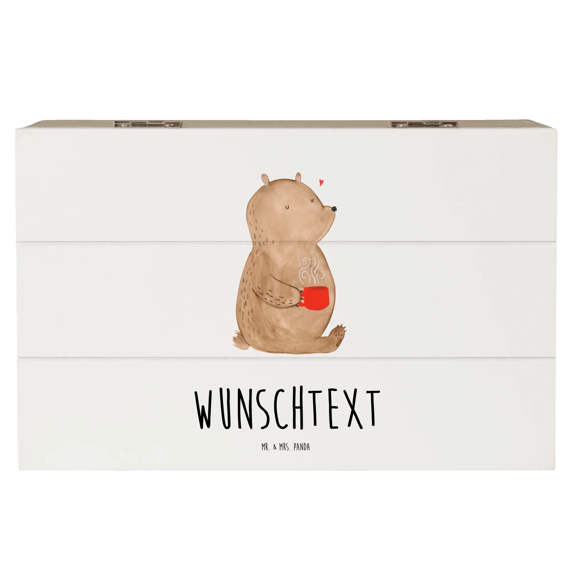 Entdecke die persönliche Holzkiste mit dem süßen Bären Kaffee-Motiv von Mr. & Mrs. Panda – das perfekte Geschenk für Kaffeeliebhaber und Bärenfans!