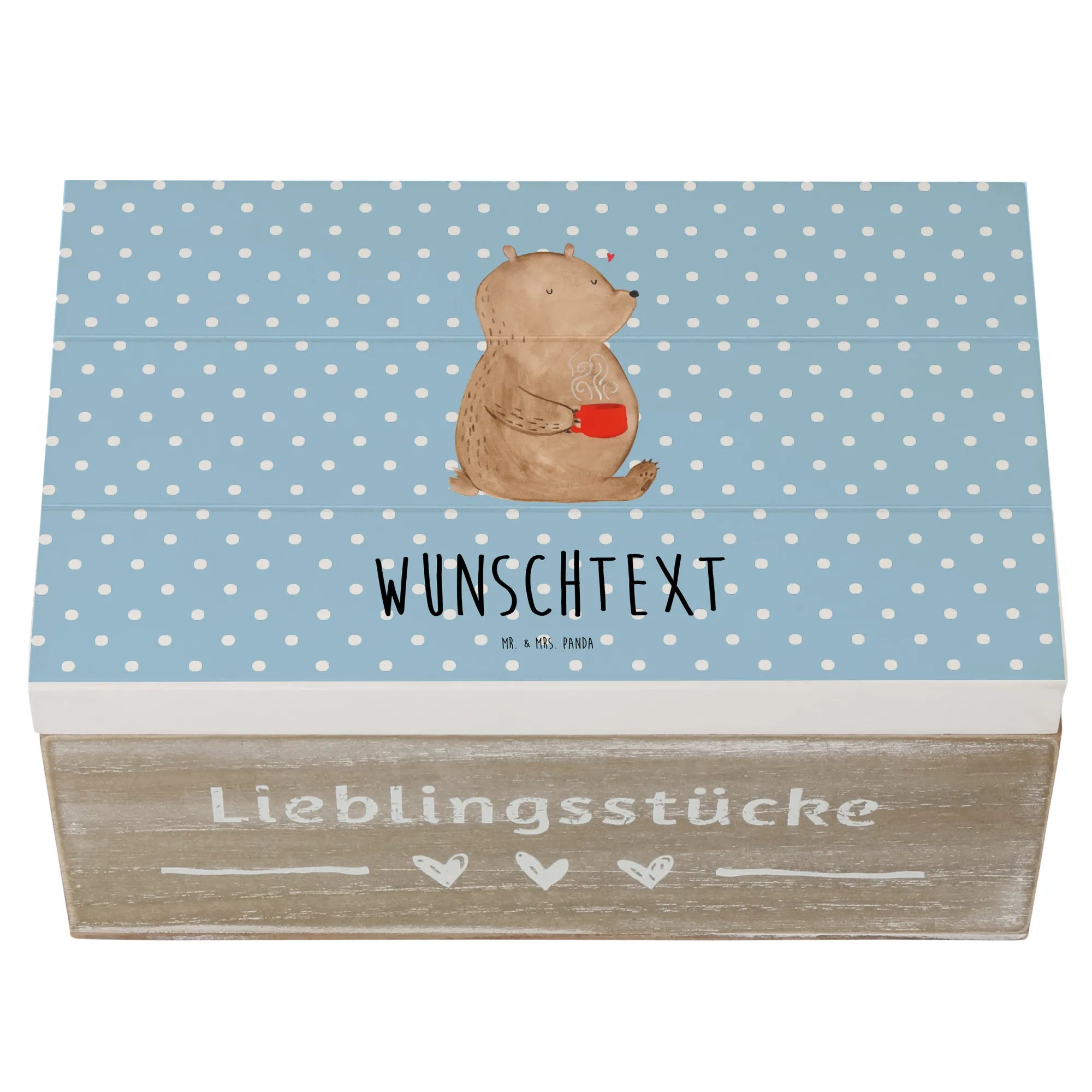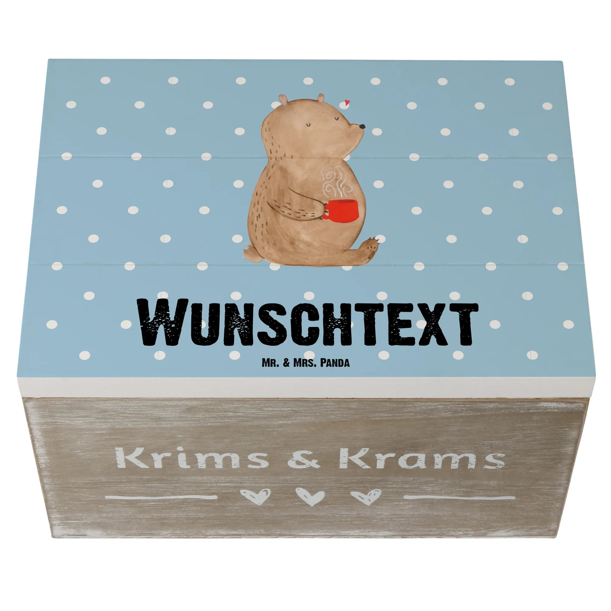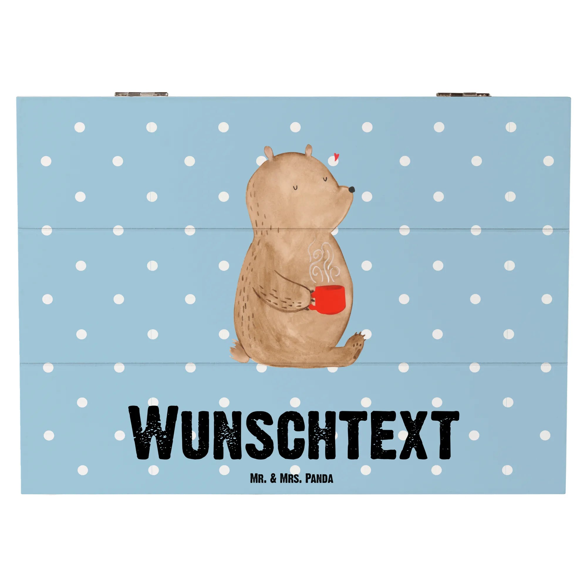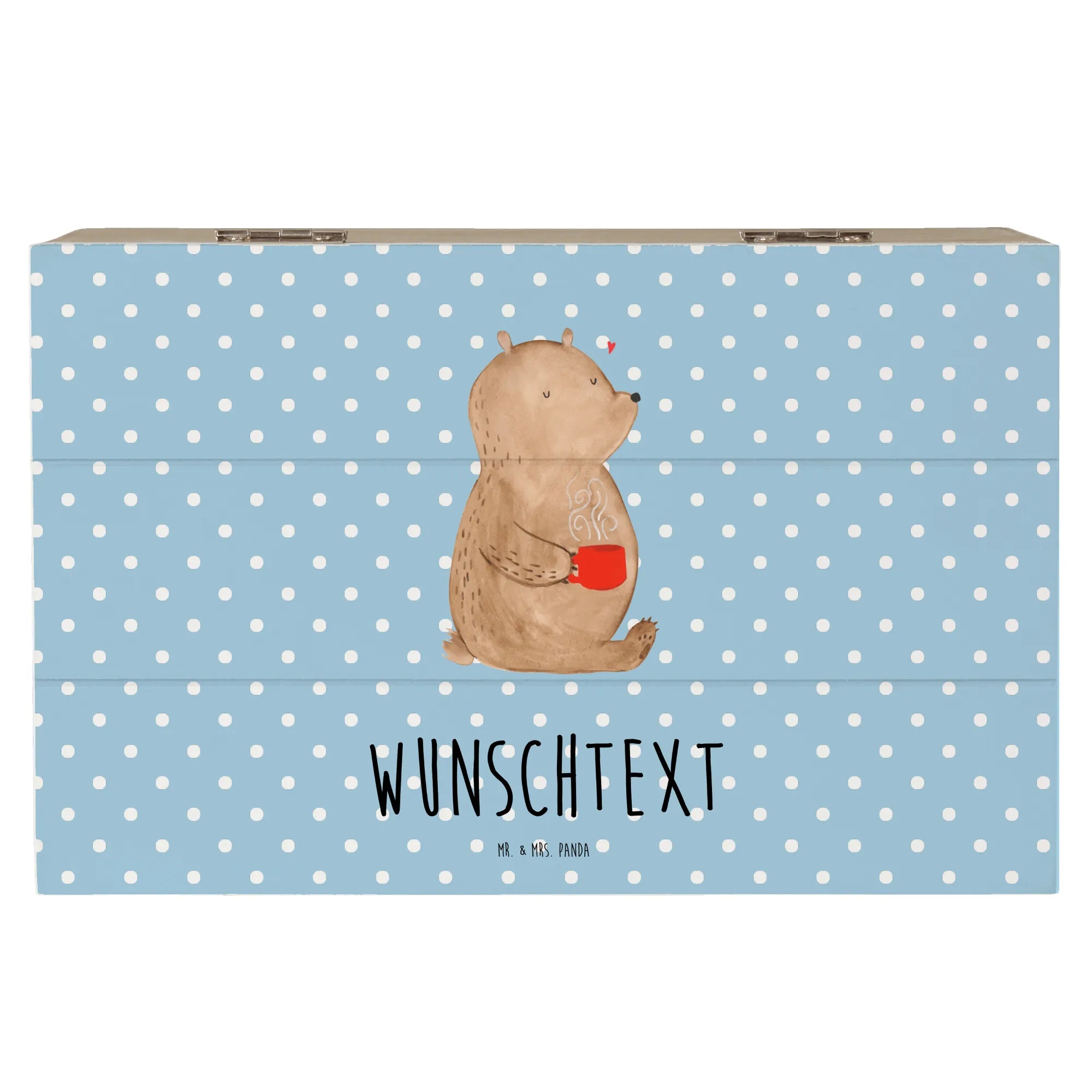 Entdecke die persönliche Holzkiste mit dem süßen Bären Kaffee-Motiv von Mr. & Mrs. Panda – das perfekte Geschenk für Kaffeeliebhaber und Bärenfans!