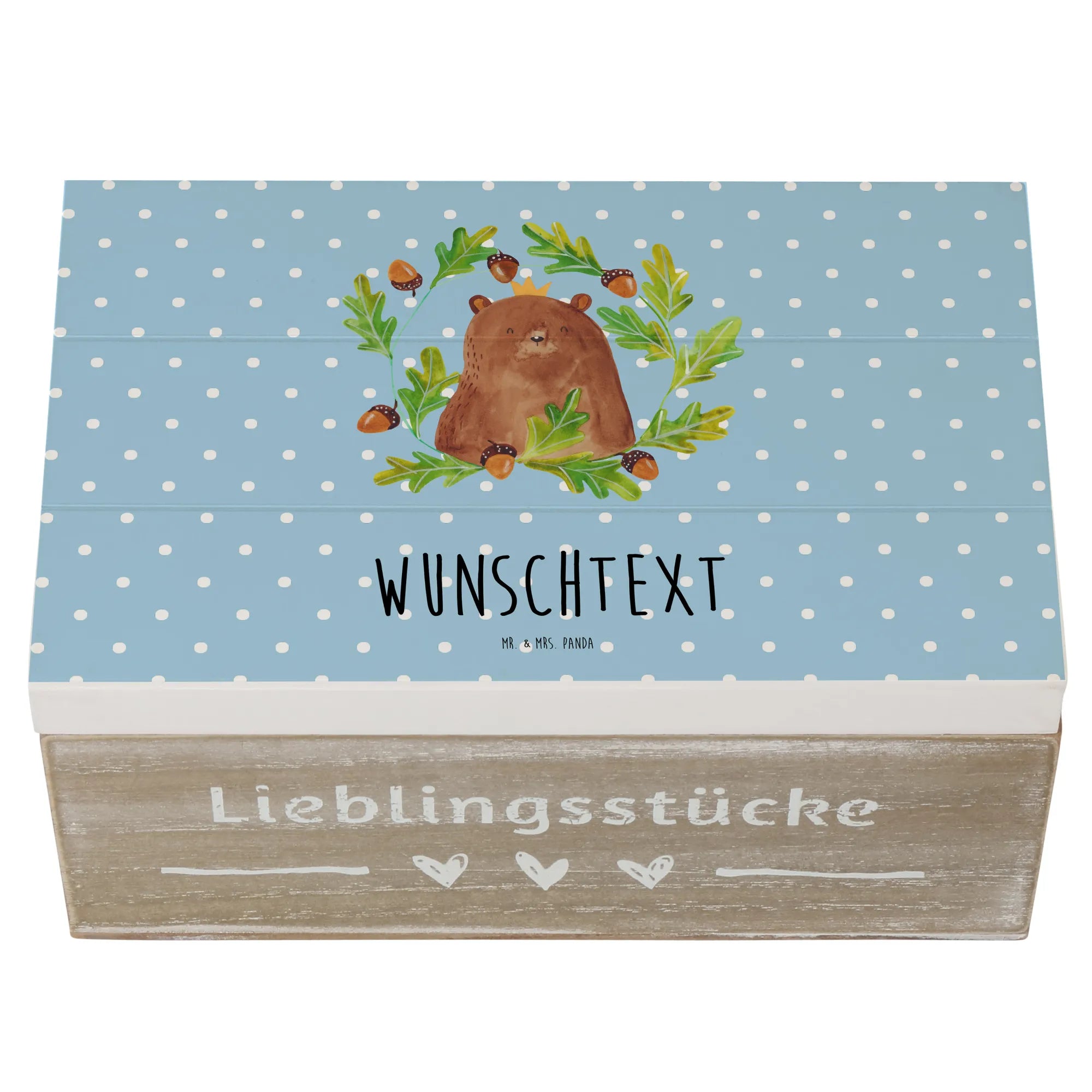 Entdecke die wunderschöne Personalisierte Holzkiste Bär König von Mr. & Mrs. Panda! Diese einzigartige Schatzkiste ist nicht nur ein praktischer Aufbewahrungsort für all deine Erinnerungen, sondern auch ein herzliches Geschenk für besondere Anlässe.