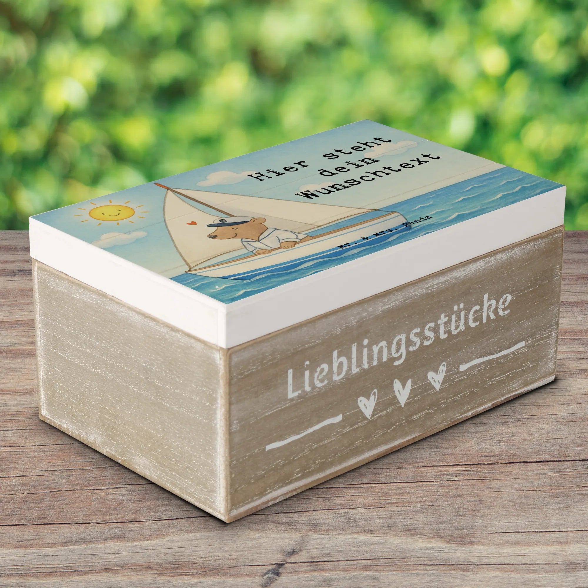 Personalisierte Holzkiste Bär Segeln Design - 22 x 15 cm