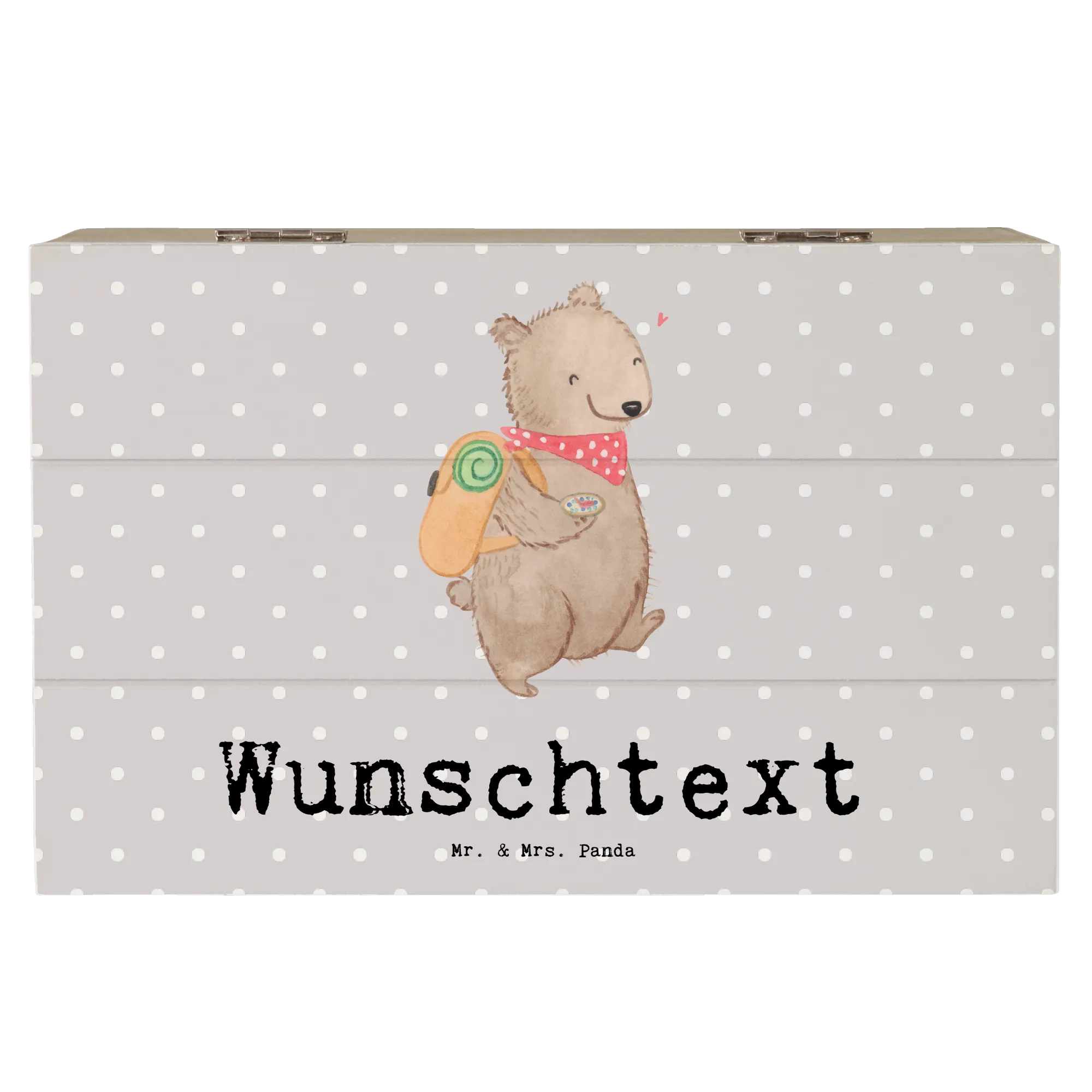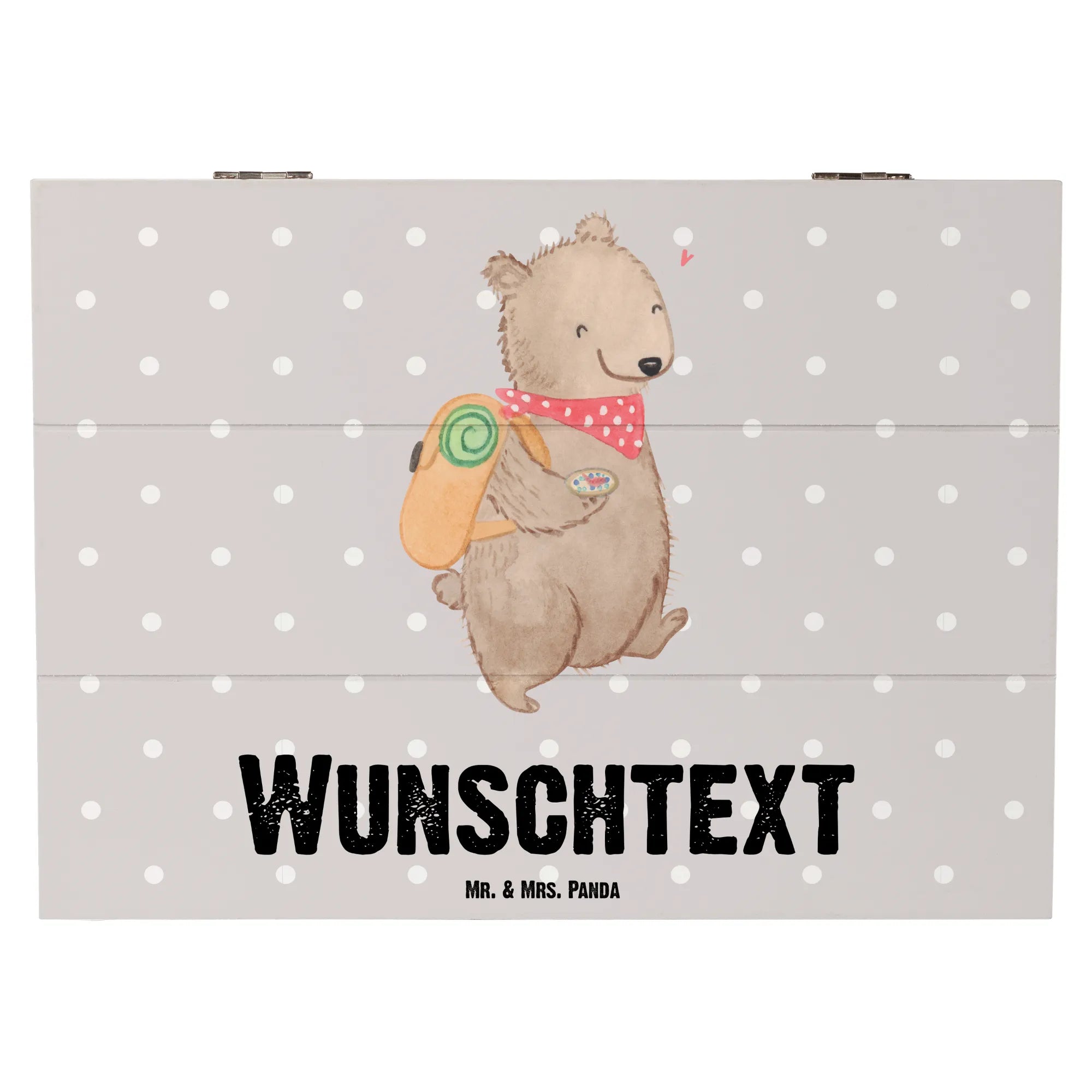 Die personalisierte Holzkiste mit dem süßen Motiv "Bär Wandern Tage" von Mr. & Mrs. Panda ist das perfekte Geschenk für alle leidenschaftlichen Wanderer und Naturliebhaber. Diese wunderschöne Kiste, ansprechend in Grau Pastell gestaltet, bietet nicht nur einen nützlichen Stauraum, sondern auch die Möglichkeit, besondere Erinnerungen zu bewahren. Ob für Deine Lieben, als kreative Aufbewahrungsmöglichkeit für die nächste Wanderung oder als nachhaltige Geschenkbox, diese Kiste passt zu jedem Anlass. Du kannst diese Schatzkiste individuell mit dem Namen des Beschenkten personalisieren – so wird sie zu einem einzigartigen Erinnerungsstück!