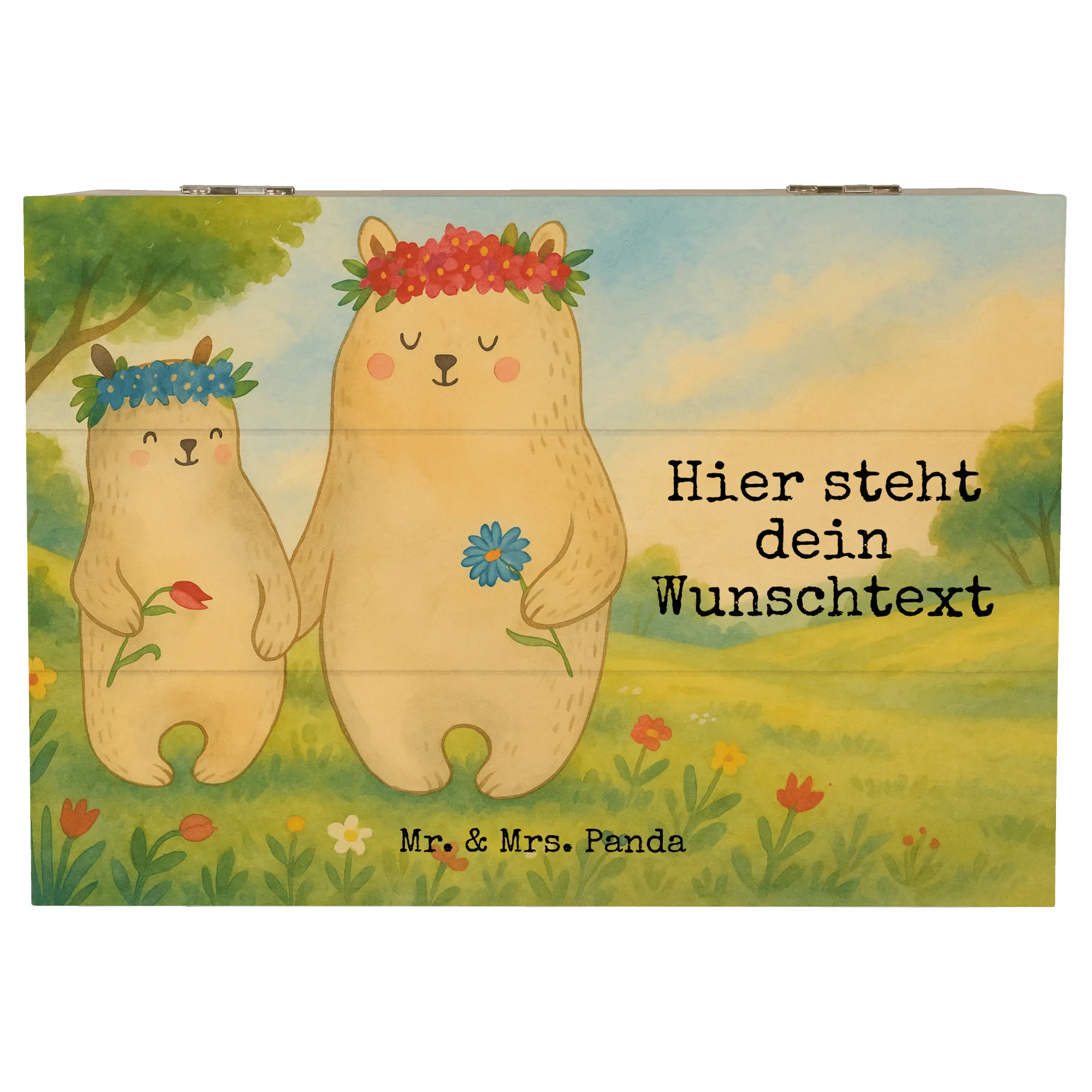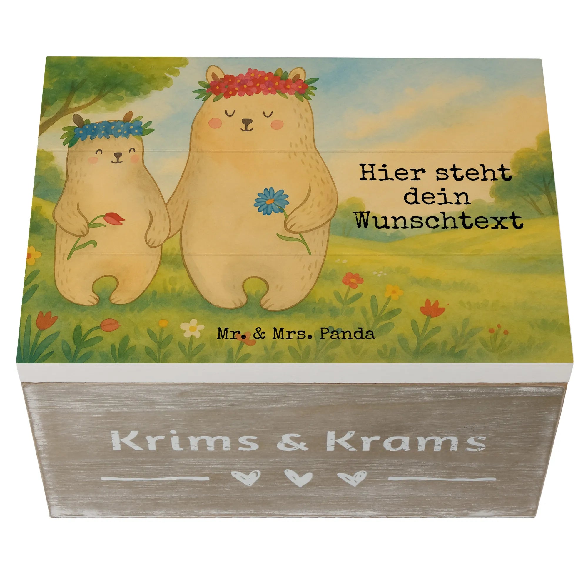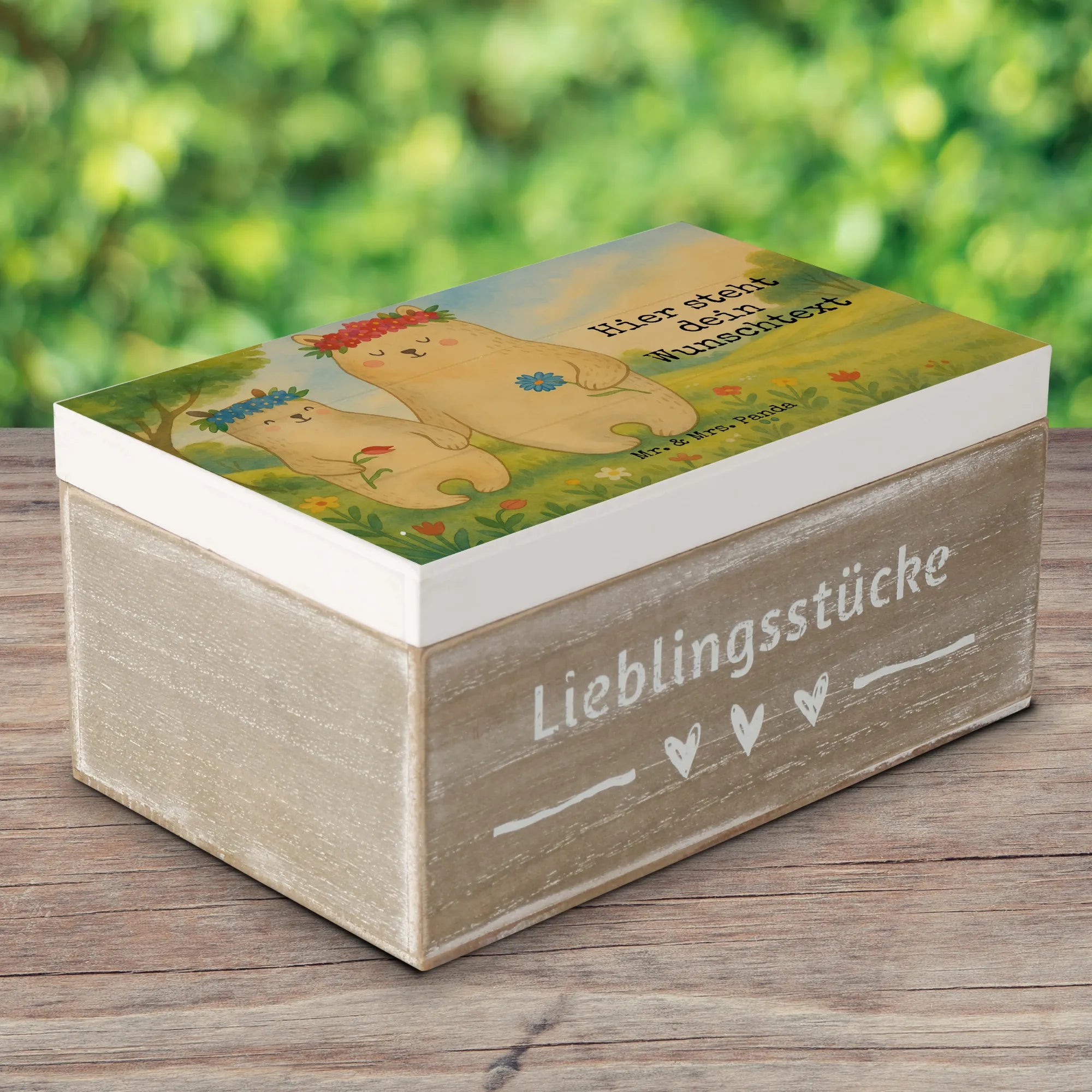 Personalisierte Holzkiste Bären mit Blumenkranz Design - 19 x 12 cm