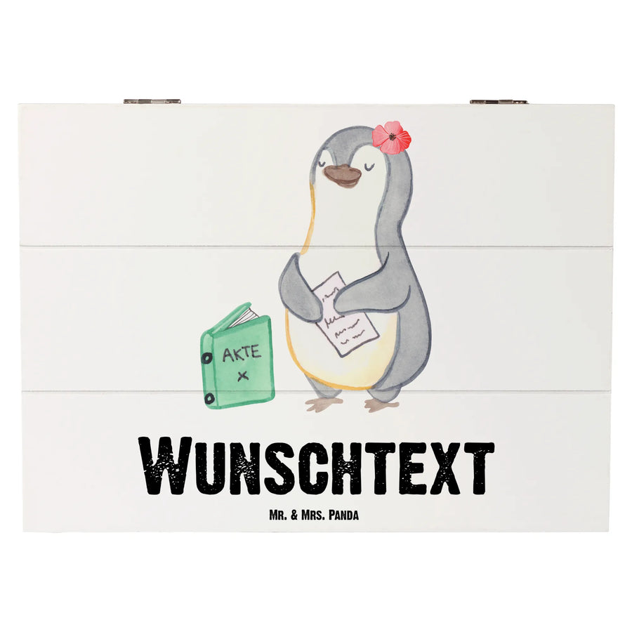 Die Holzkiste wurde aus hochwertiger, stabiler Holzfaser gefertigt, die nicht nur ästhetisch ansprechend, sondern auch langlebig ist. Mit ihrem süßen Pinguin-Motiv, der einen Aktenordner hält, zaubert sie jedem ein Lächeln ins Gesicht und sorgt dafür, dass deine Wertschätzung auch im Alltag präsent ist. Die Einschlagscharniere ermöglichen ein einfaches Öffnen und Schließen, sodass die Kiste immer bereit ist, deine Erinnerungen zu schützen.