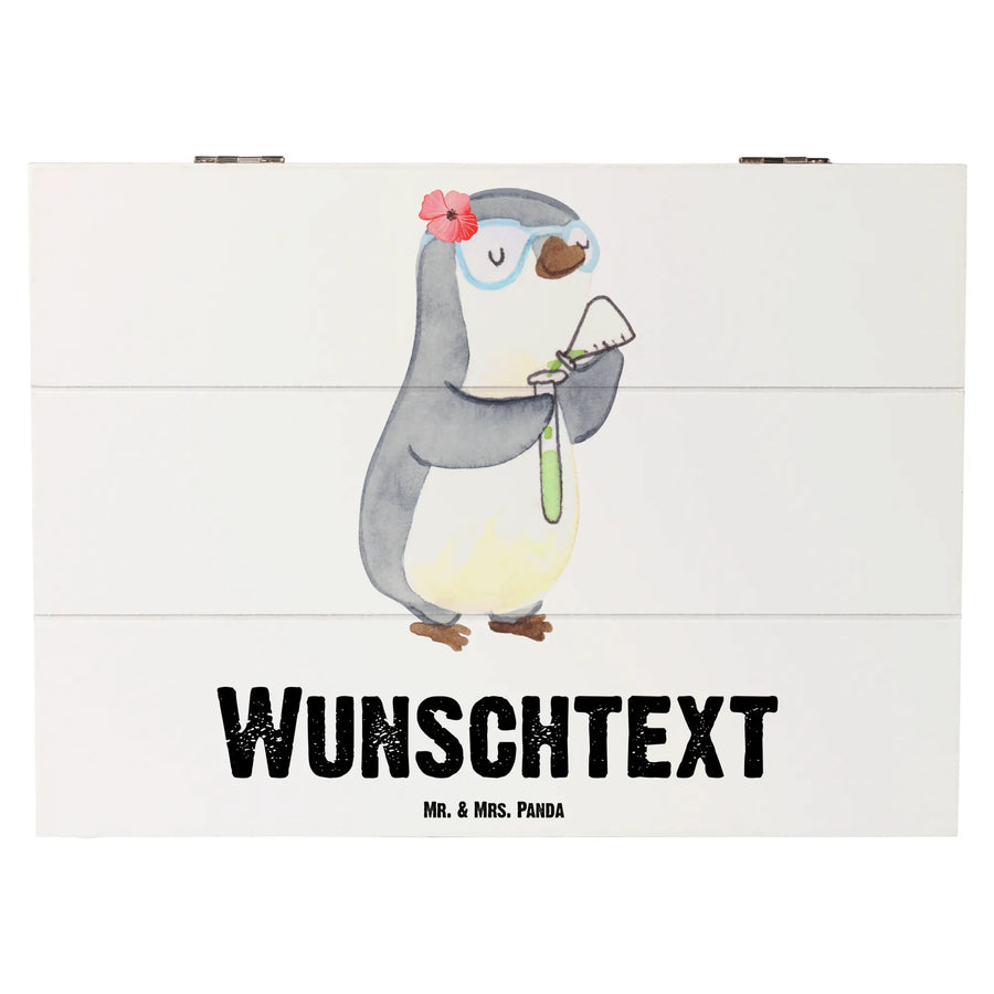 Entdecke die personalisierte Holzkiste "Chemielaborantin mit Herz" von Mr. & Mrs. Panda – das perfekte Geschenk für alle, die in der Chemie arbeiten oder eine Leidenschaft für die Naturwissenschaften haben!