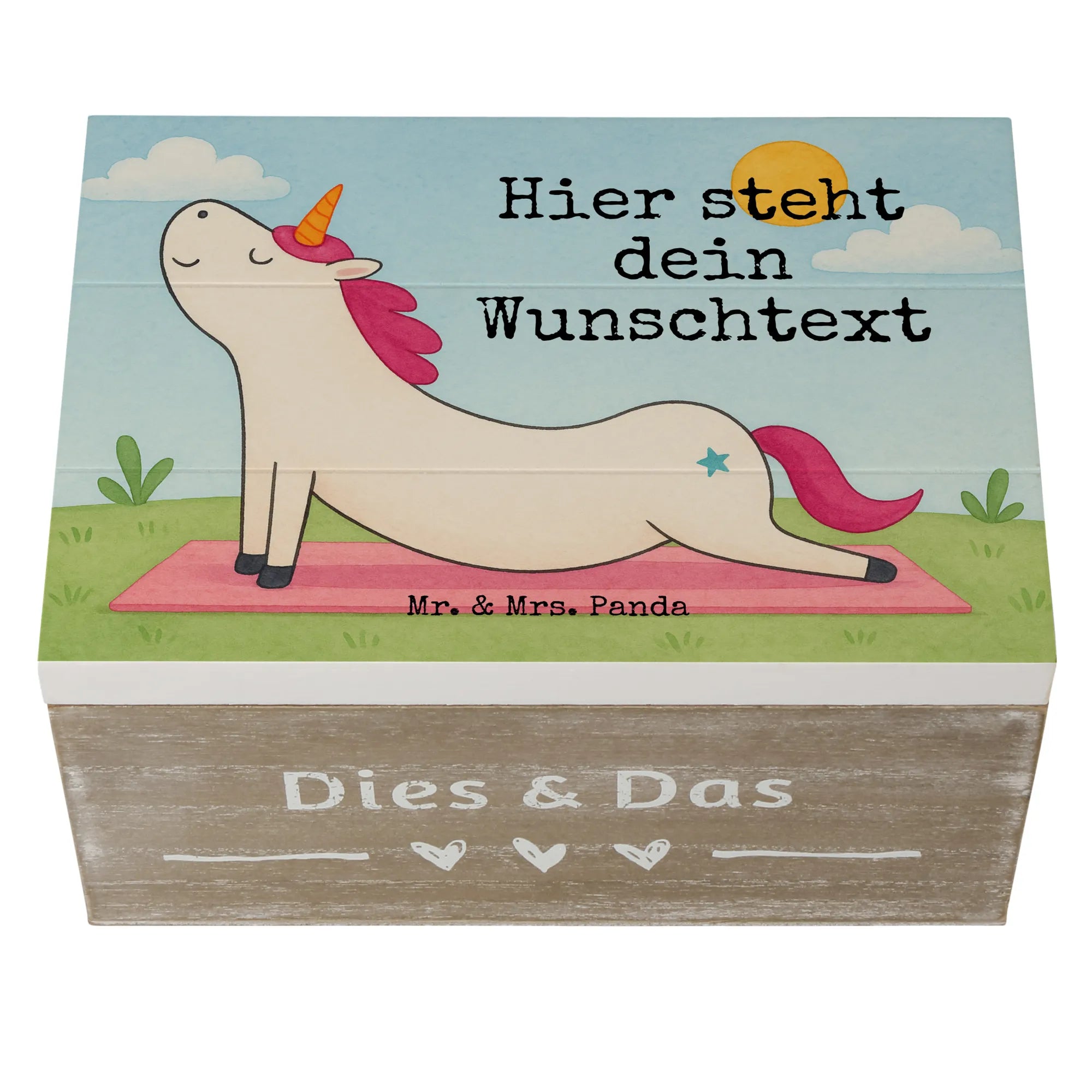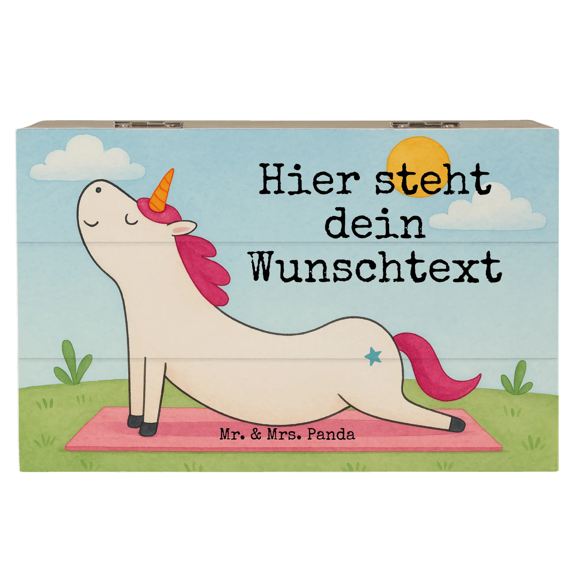 Personalisierte Holzkiste Einhorn Yoga Design - 19 x 12 cm