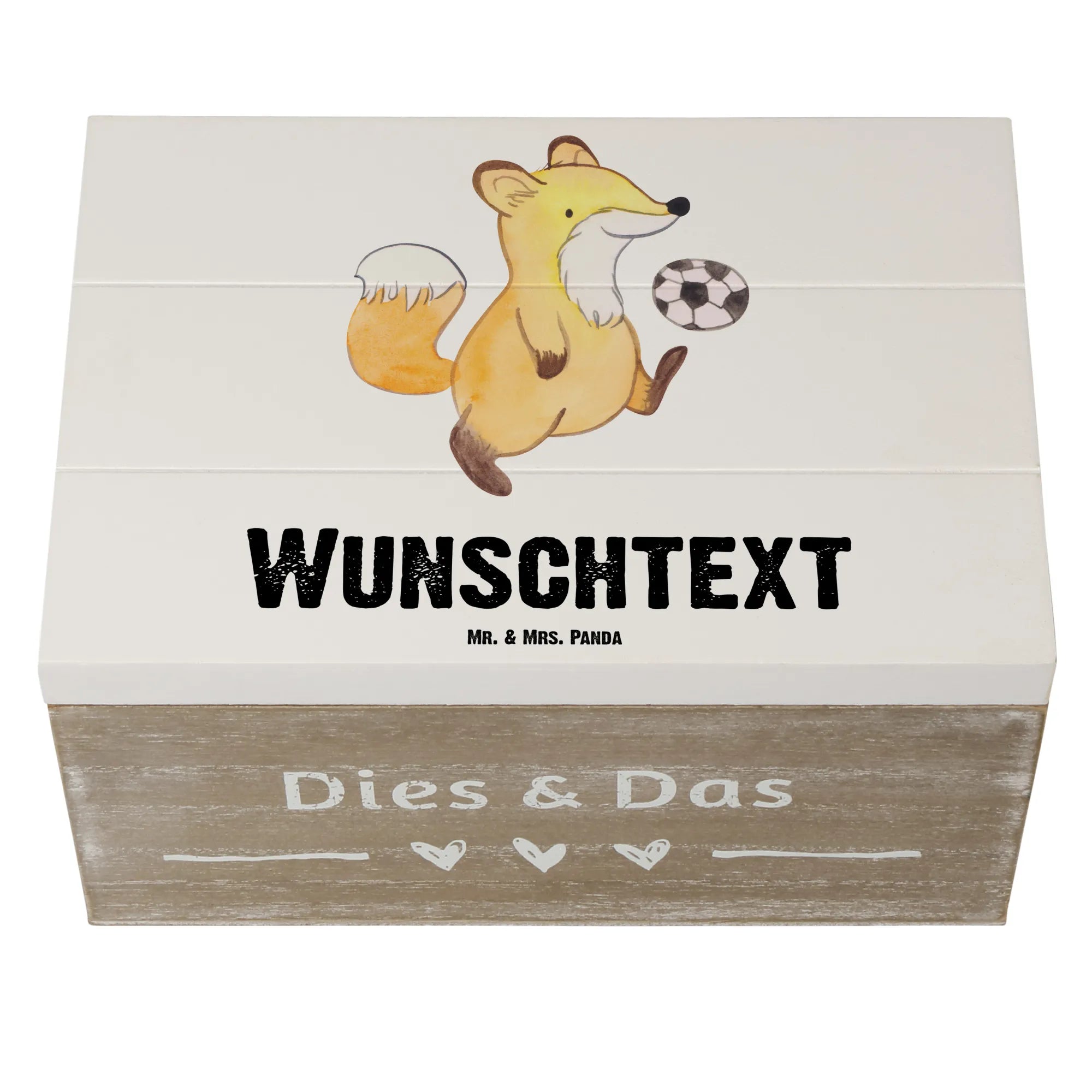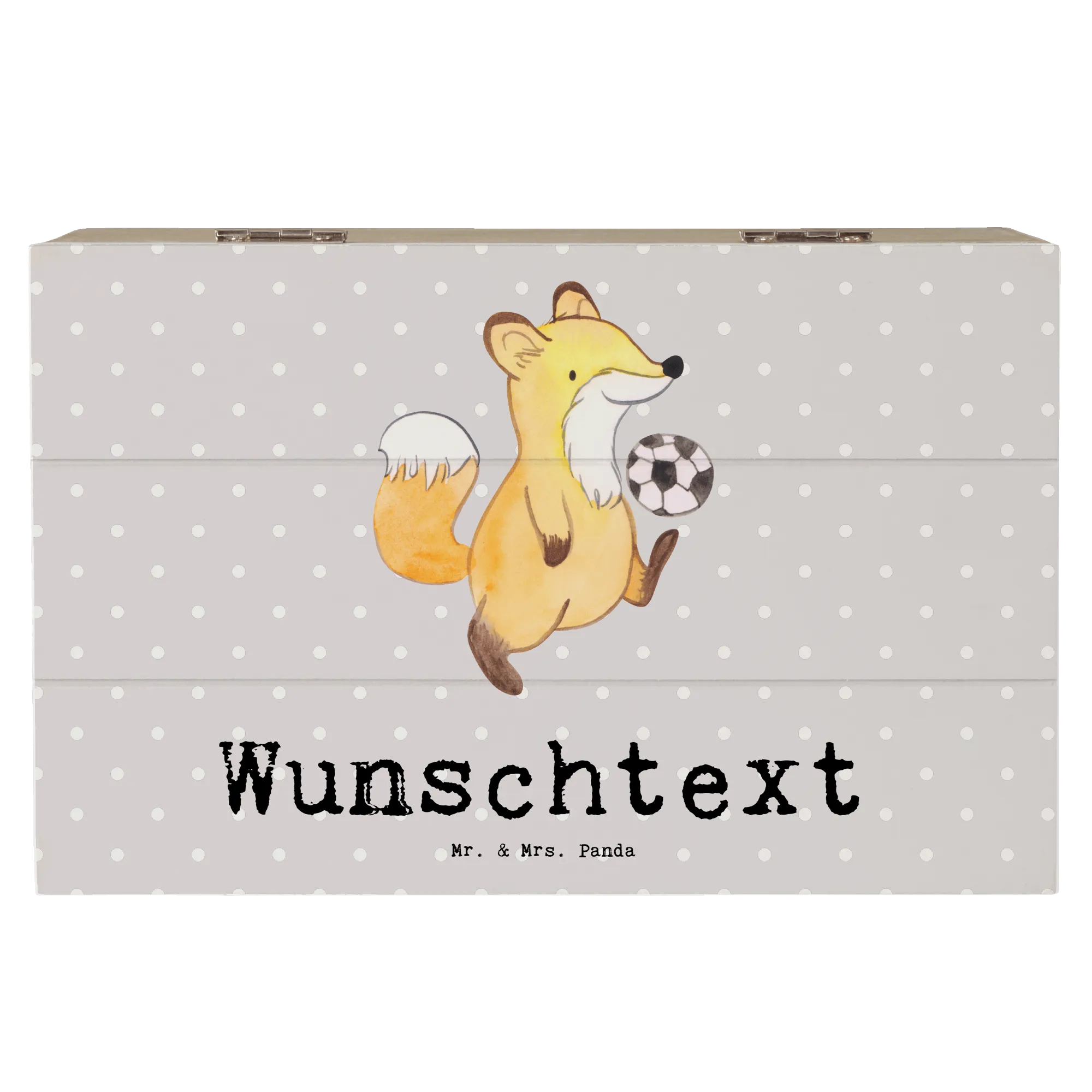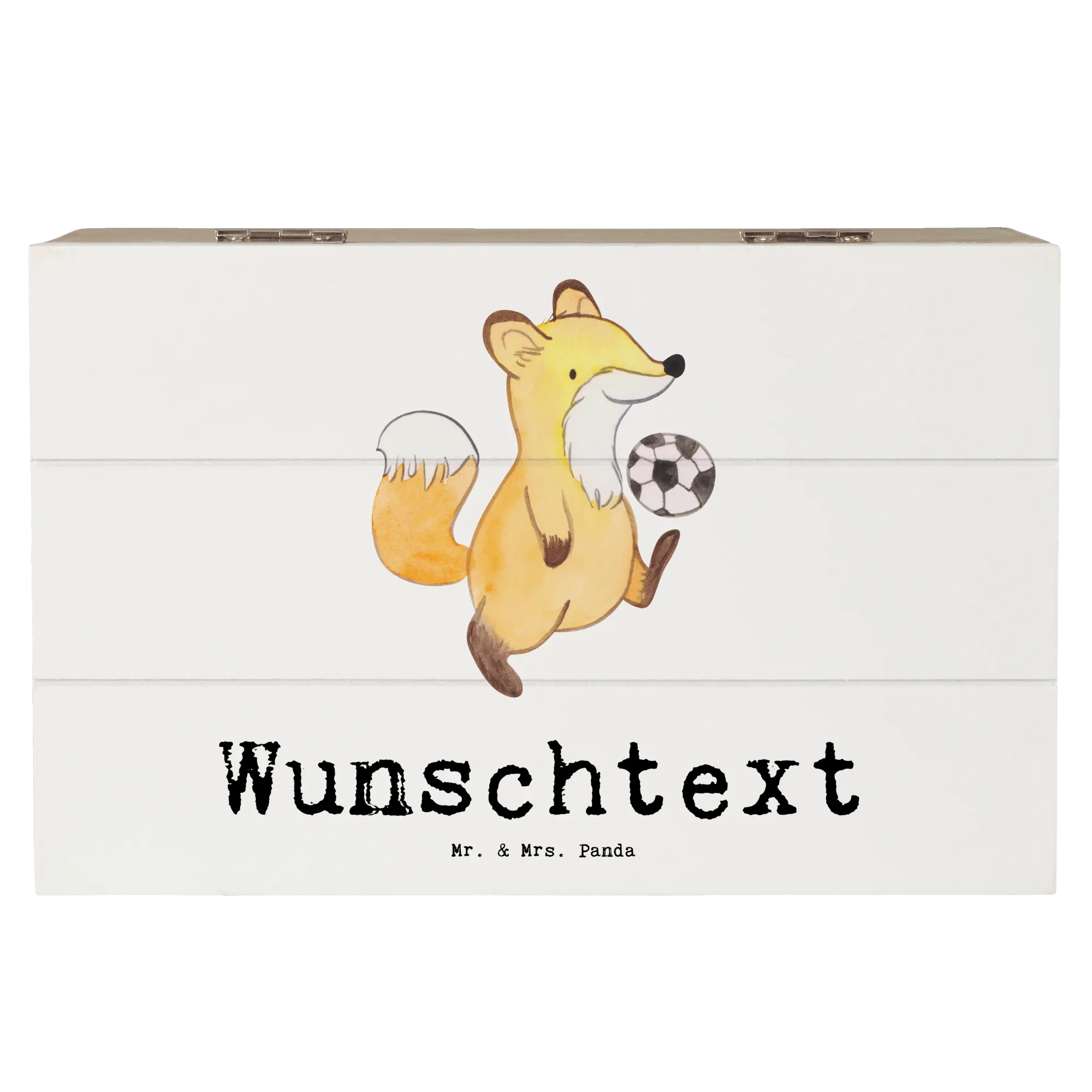 \nDas niedliche Motiv "Fußballer mit Herz" ist ideal für kleine und große Fußballfreunde - ein kleiner Fuchs, der stolz einen Fußball kickt, und damit all die Freude und Leidenschaft des Spiels verkörpert. Egal, ob zum Geburtstag, zum Jubiläum oder einfach nur, um Danke zu sagen, diese Kiste ist das perfekte Geschenk für jeden Anlass. Die Box kann mit einem Namen oder einem Wunschtext personalisiert werden, was sie einzigartig macht und von Herzen kommt.