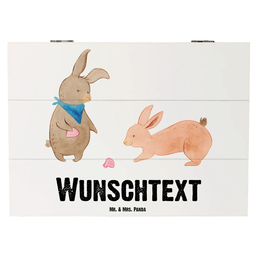 Suchst du das perfekte Geschenk für deine Familie oder für deine besten Freunde? Dann ist die personalisierte Holzkiste mit dem süßen Hasen- und Muschel-Motiv von Mr. & Mrs. Panda genau das Richtige!
