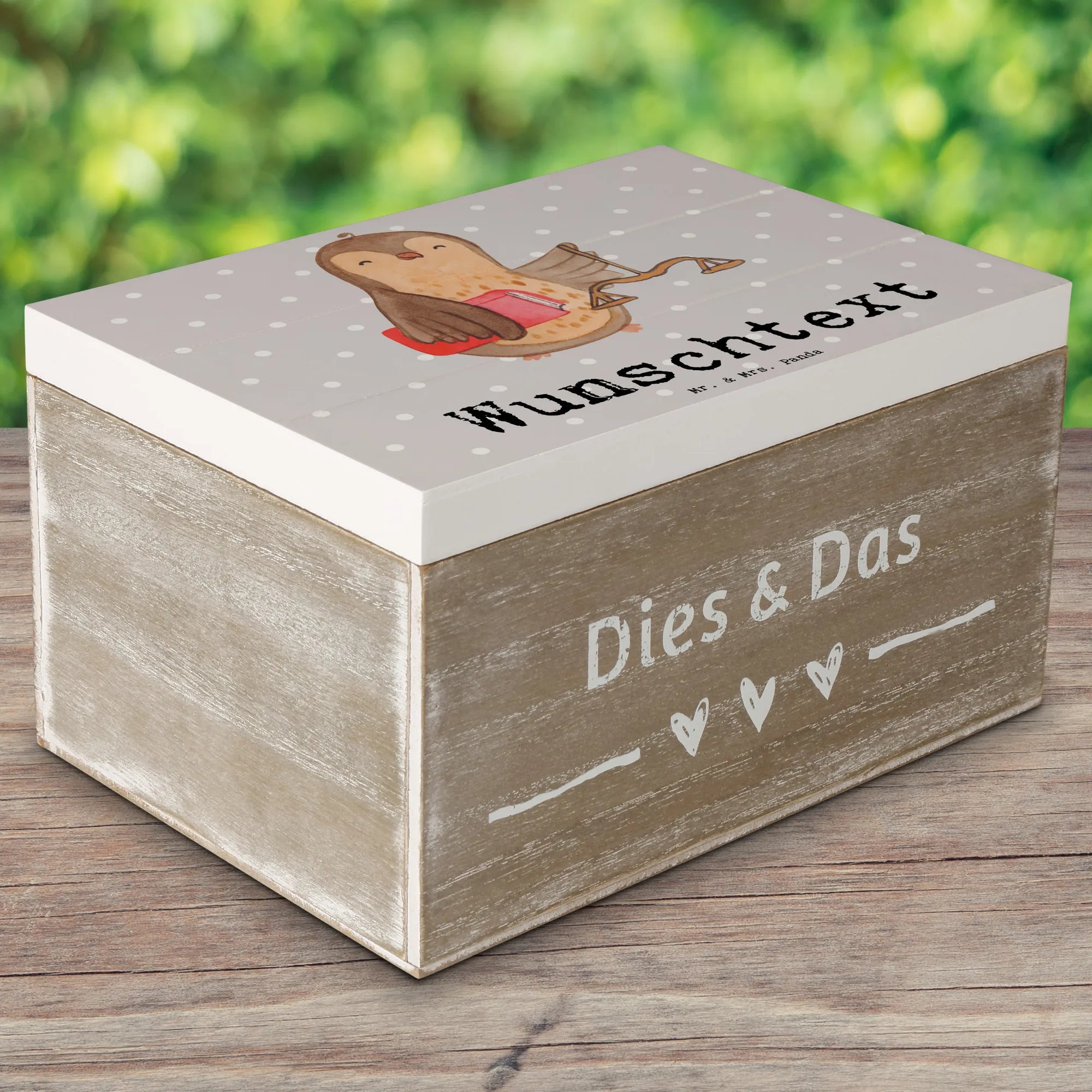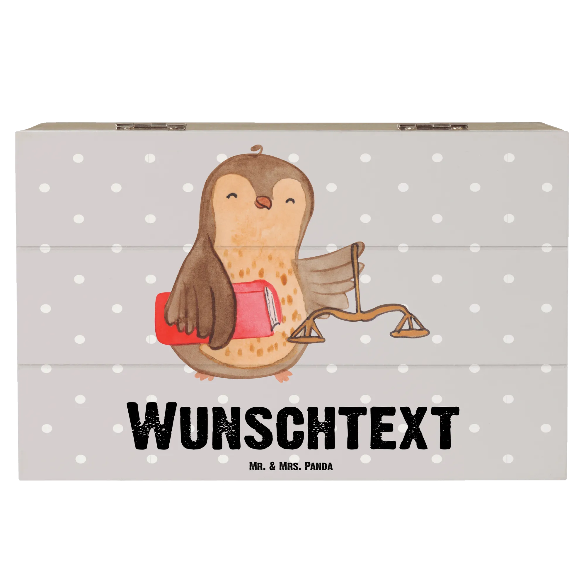 Die personalisierte Holzkiste "Jurist mit Herz" von Mr. & Mrs. Panda ist das perfekte Geschenk für alle Jurastudenten und Jura-Absolventen. Ob zur bestandenen Prüfung, zum Abschluss des Studiums oder einfach als liebevolle Erinnerung an die besondere Zeit im Jurastudium – diese Kiste ist ein Must-Have für jeden Rechtsanwalt in spe! Mit ihrem einzigartigen Motiv einer süßen Eule, die ein Gesetzbuch in der Hand hält, bringt diese Schatzkiste nicht nur Freude, sondern auch eine Prise Humor mit dem Slogan: 'Du bist nur ein halber Mensch, wenn du kein Jurist bist.'