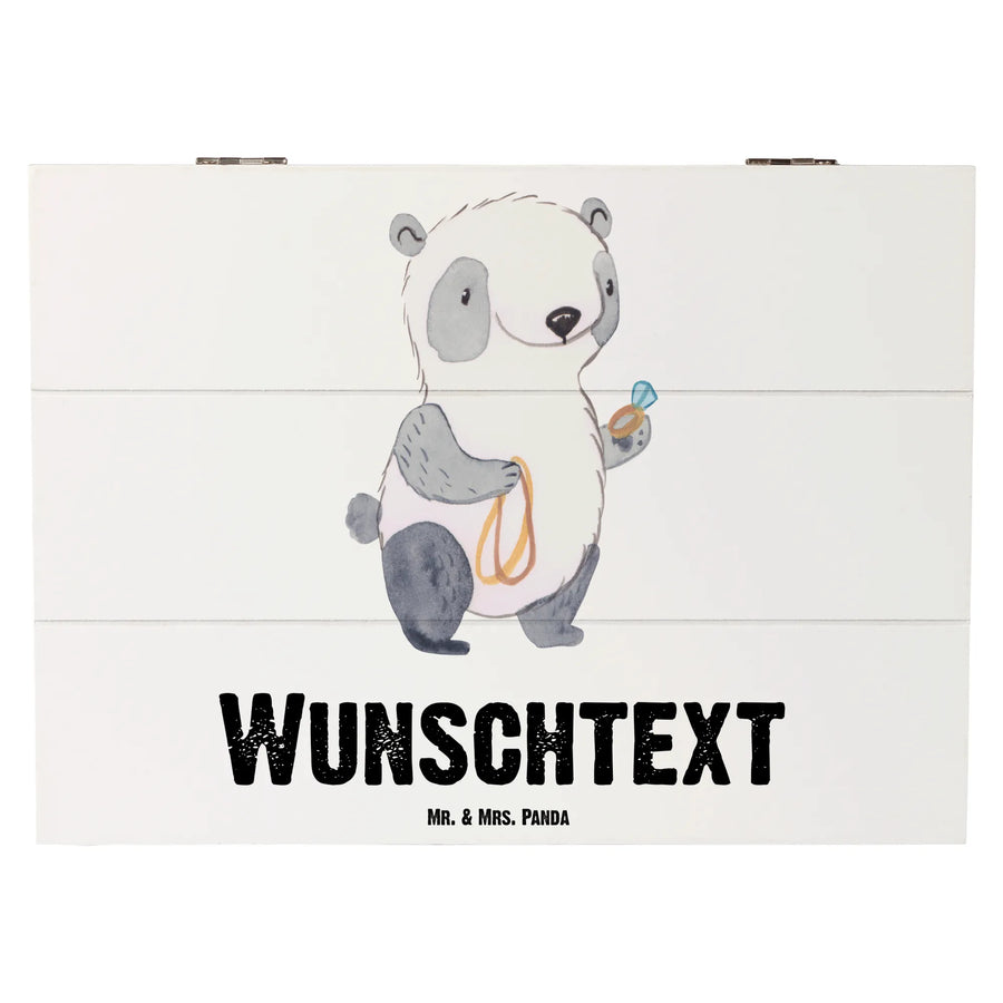 Verschenke Freude und Erinnerungen mit unserer personalisierten Holzkiste "Juwelier mit Herz" von Mr. & Mrs. Panda!
