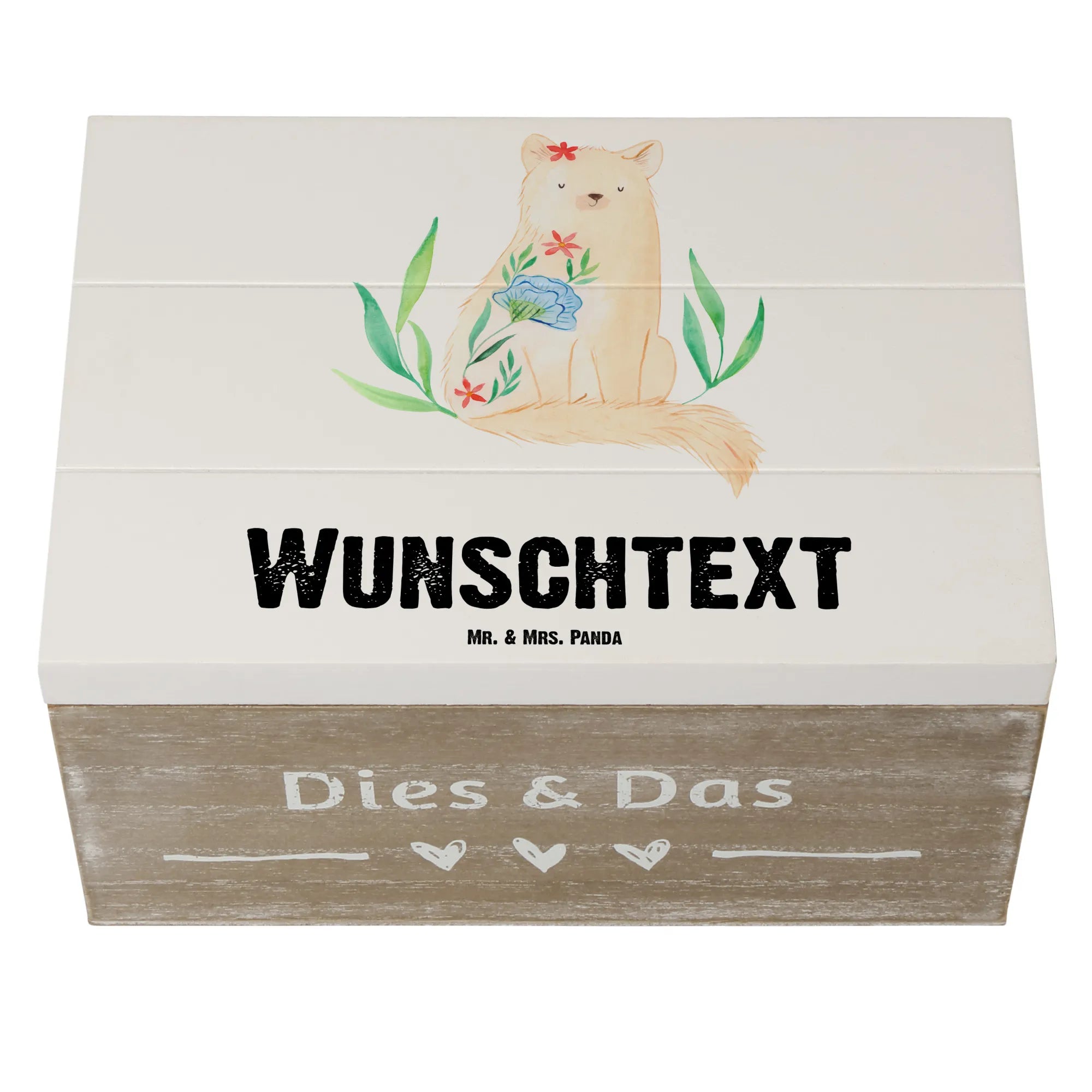 Entdecke die zauberhafte Welt der personalisierten Holzkiste "Katze Blumen" von Mr. & Mrs. Panda!