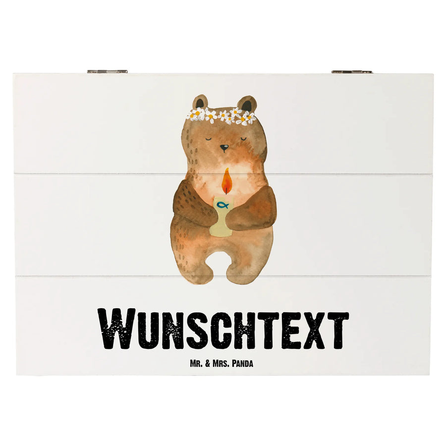 Personalisierte Holzkiste Kommunion-Bär - 25 x 18 cm - Weiß
