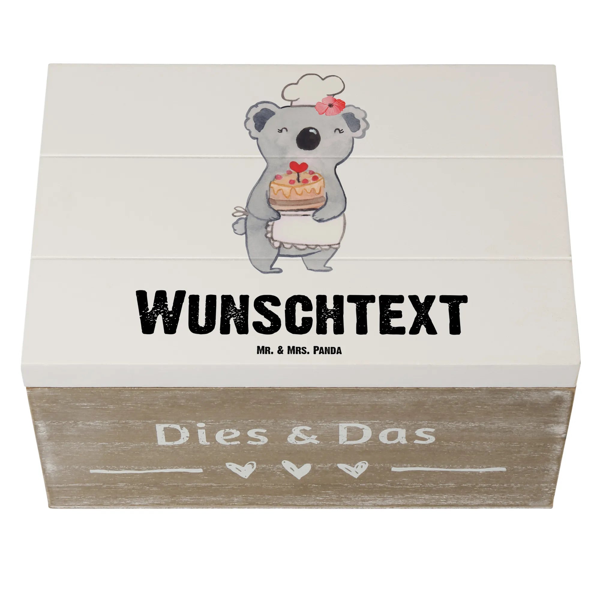 Die personalisierte Holzkiste Konditorin mit Herz von Mr. & Mrs. Panda ist das perfekte Geschenk für alle, die eine Leidenschaft für das Backen und die süße Kunst des Konditorhandwerks besitzen.